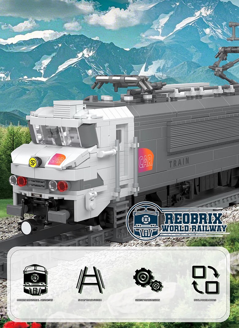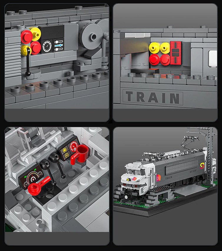 Formschönes und farblich ansprechendes Modell, licensiert vom MOCer BC01Pool.Dieses Set ist mit dem Mould King RWY-Modul motorisiert und wird über die beiliegende Fernbedienung gesteuert. Das RYW-Modul vereint Antrieb, Empfänger und Akku in einem Modul, dass an den Form-Faktor des Eisenbahn-Motor angelehnt ist (aber 1 Noppen breiter). Wie bei der World Railway Reihe von Mould King üblich gehört zum Set auch noch ein Schienen-Oval (120cm x 80cm). Dieses lässt sich in ein vorhandenes Schienen-Netz integrieren, da voll kompatibel mit den führenden Herstellern. Wie immer bei Mould King sind die Steine nach Bauabschnitten in Tüten vorsortiert und die Anleitung leicht verständlich.