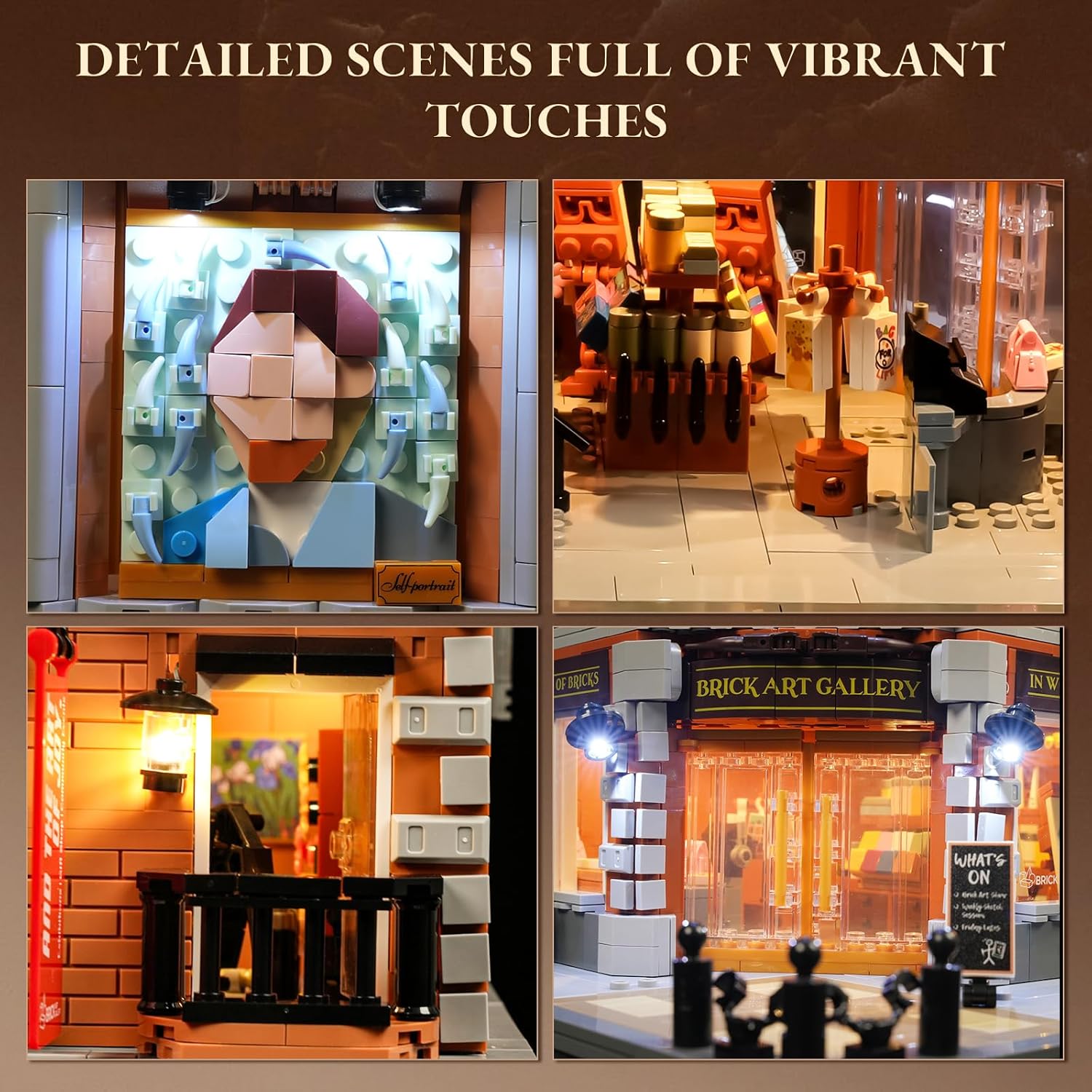 Technisch überzeugt das Set mit einer beeindruckenden Ausstattung: Ganze 22 Lichtpunkte und 7 Lichtleisten sind in die Architektur integriert und tauchen die Galerie in atmosphärisches Ausstellungslicht. Über 60 bedruckte Elemente lassen berühmte Meisterwerke lebendig werden, ganz ohne Aufkleber. Dank modularer Bauweise können Etagen abgenommen, Ausstellungsflächen herausgezogen und Kunstwerke flexibel inszeniert werden. Mit 3.400 Teilen in 17 Bauabschnitten entsteht ein anspruchsvolles, aber zugleich meditatives Bauprojekt. Besonders clever: die unsichtbar geführten Kabel der LEDs, die das Modell wirken lassen wie ein echtes Museumsgebäude.