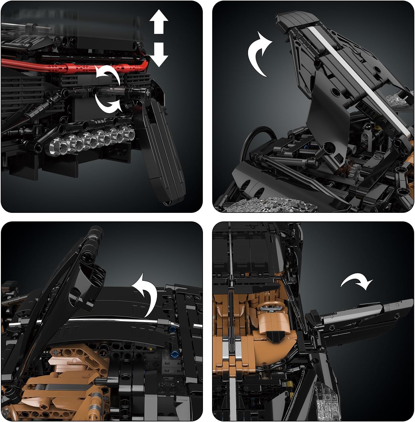 ACHTUNG: Motorisierung ist für das Set ungeeignet. Die beiden Black Furious Motoren haben zu wenig Drehmoment. Daher verkaufen wir das Set als Teilespender! Set enthält einen Servo- und zwei Black Furious L-Motoren, Akku-Box und Fernbedienung. Wie immer bei Mould King sind die Steine nach Bauabschnitten in Tüten vorsortiert und die Anleitung leicht verständlich.