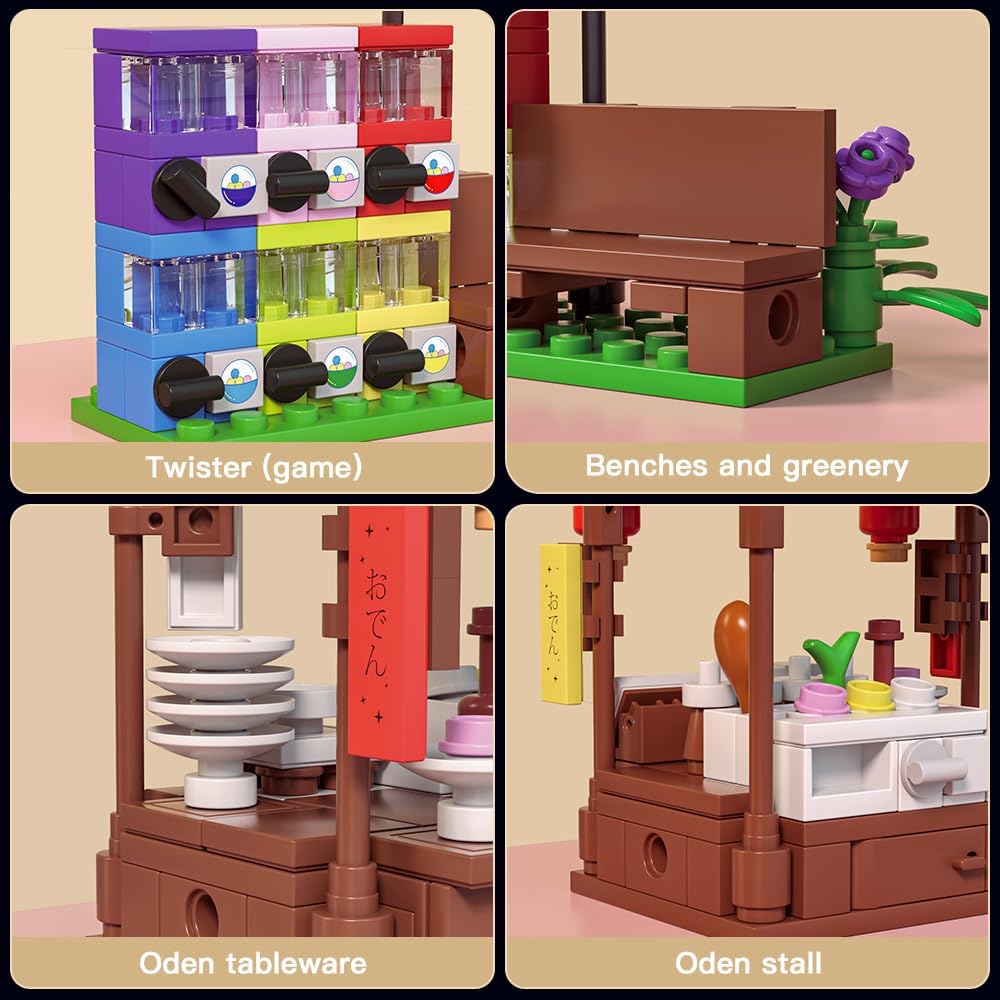 Hier zum Essen einen Oden Stand - ein typisches Japanisches Gericht und zum Spielen einen Gashapon Kapselspielwaren-Stand.