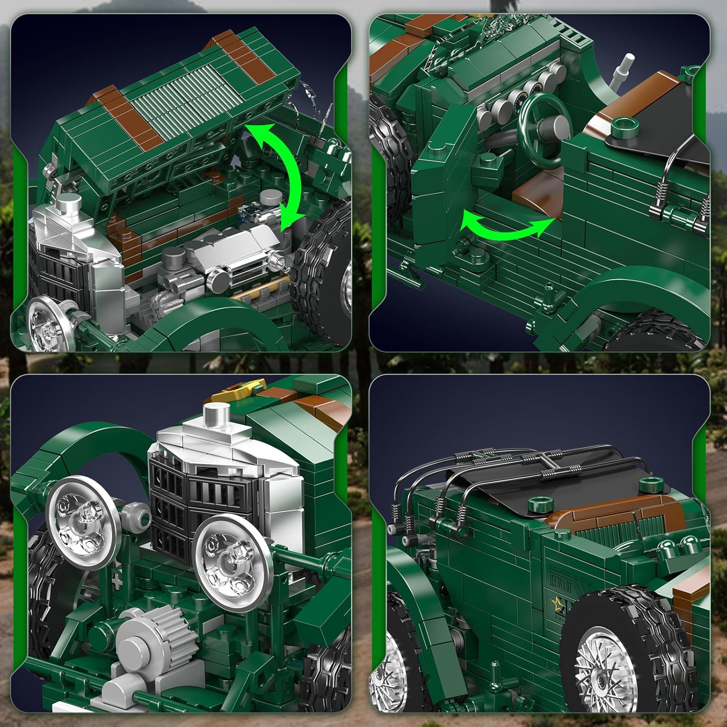 Formschönes Modell eines amerikanischen Oldtimers. In der Creativ Idea-Reihe von Mould King finden sich viele gelungenen Sportwagen und Oldtimer-Modellen fürs Regal oder die Vitrine. Vor allem der bekannte MOC-Designer Firas Abu-Jaber sorgt für ästhetisch ansprechenden Nachschub. Funktionen: Türen, die Motorhaube und der Kofferraum lassen sich öffnen, das Dach abnehmen. Die ikonische  Karosserie-Farbe, sowie die stylischen Felgen und die imposante Motorhaube runden den Gesamteindruck ab. Wie immer bei Mould King sind die Steine nach Bauabschnitten in Tüten vorsortiert und die Anleitung leicht verständlich.