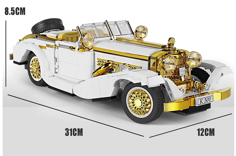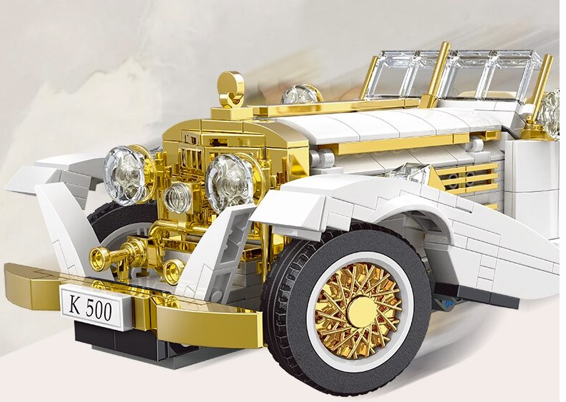 Formschönes Modell eines amerikanischen Oldtimers. In der Creativ Idea-Reihe von Mould King finden sich viele gelungenen Sportwagen und Oldtimer-Modellen fürs Regal oder die Vitrine. Vor allem der bekannte MOC-Designer Firas Abu-Jaber sorgt für ästhetisch ansprechenden Nachschub. Funktionen: Türen, die Motorhaube und der Kofferraum lassen sich öffnen, das Dach abnehmen. Die ikonische Karosserie-Farbe, sowie die stylischen Felgen und die imposante Motorhaube runden den Gesamteindruck ab. Wie immer bei Mould King sind die Steine nach Bauabschnitten in Tüten vorsortiert und die Anleitung leicht verständlich.