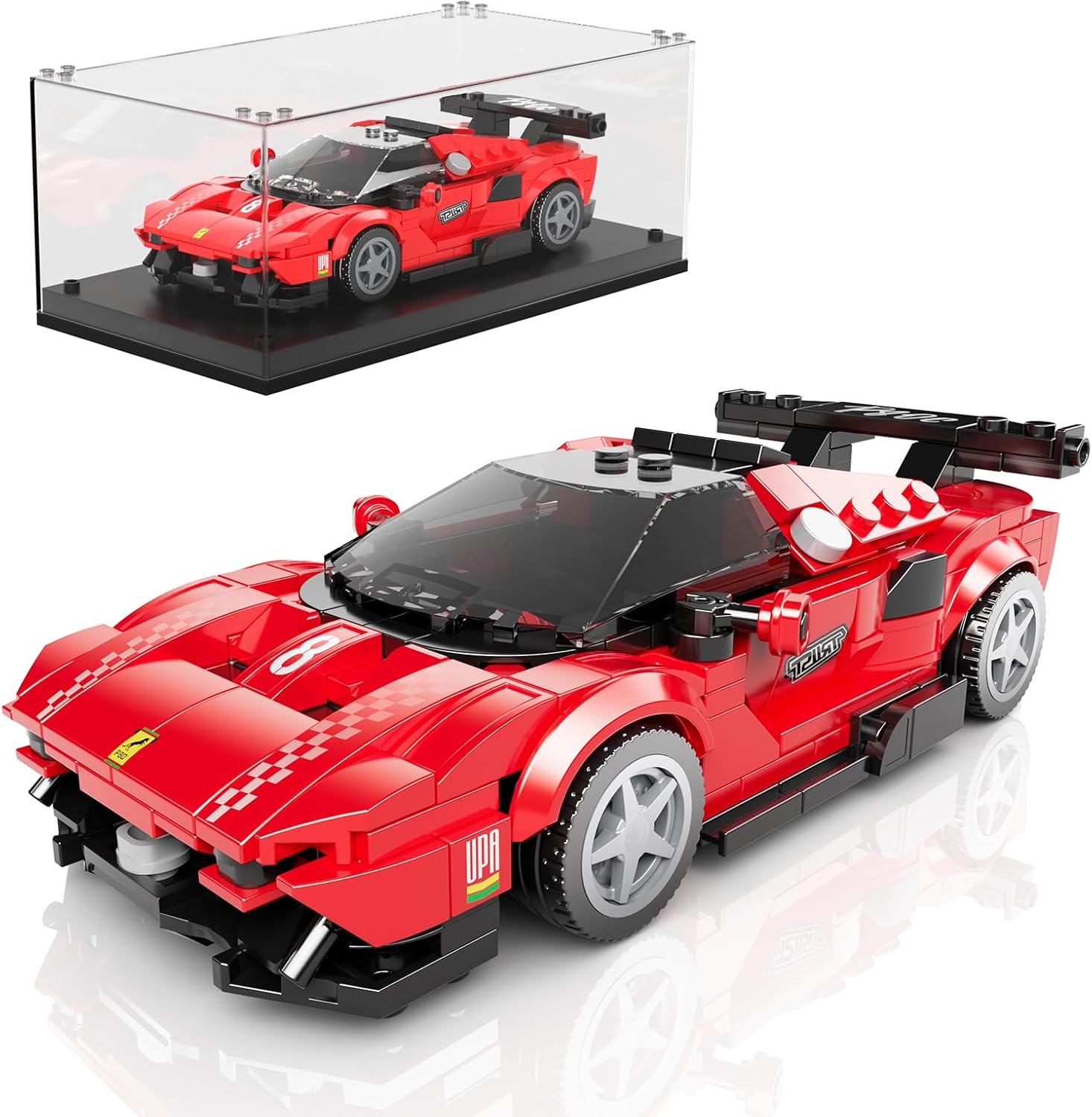Dieser Rennwagen mit 8 Noppen Breite lässt Klemmbausteinmeister einen der exklusivsten Flitzer der Welt sammeln. Baue und entdecke diese detailgetreue Nachbildung eines Ferrari 488 Pista. Faszinierend aus jedem Blickwinkel und geeignet zum Ausstellen oder für spannende Rennen! Unter der Model S Serie von Mould King versteckt sich ein wahrer Fundus an gelungenen kleinen Sportwagen-Modellen. Faszinierend aus jedem Blickwinkel und geeignet zum Ausstellen oder für spannende Rennen! Inklusive bebaubarer Kunststoff-Vitrine (Noppen an Boden und Deckel )! Set enthält Aufkleber. Die Serie umfasst weitere Modelle, alle mit dazugehöriger Sammelvitrine, die sich auch stapeln lässt.