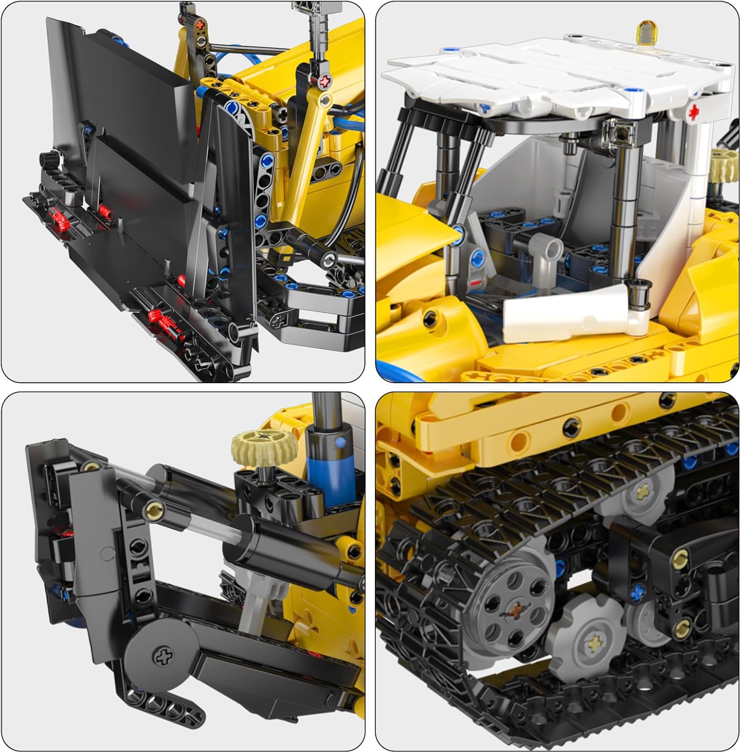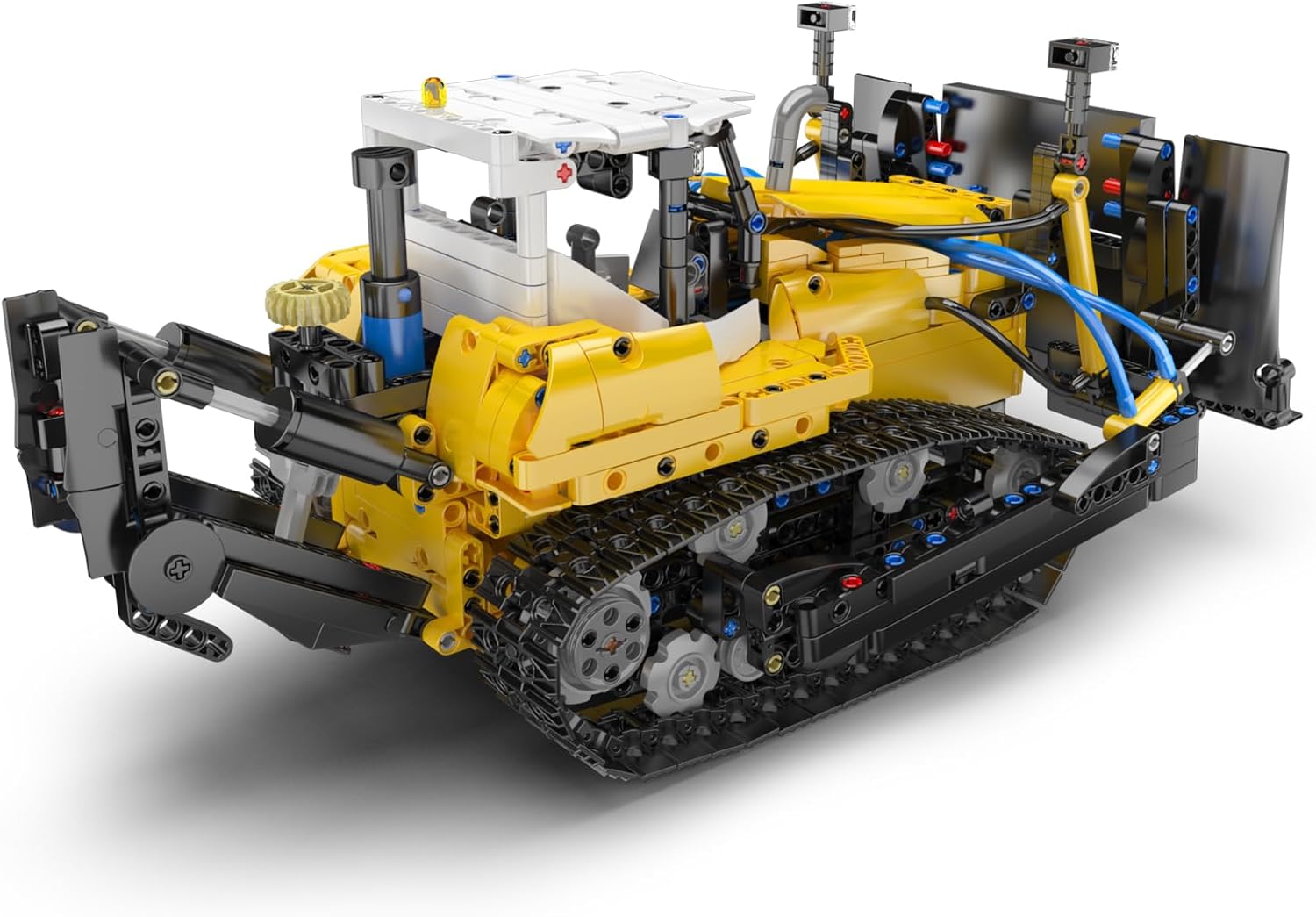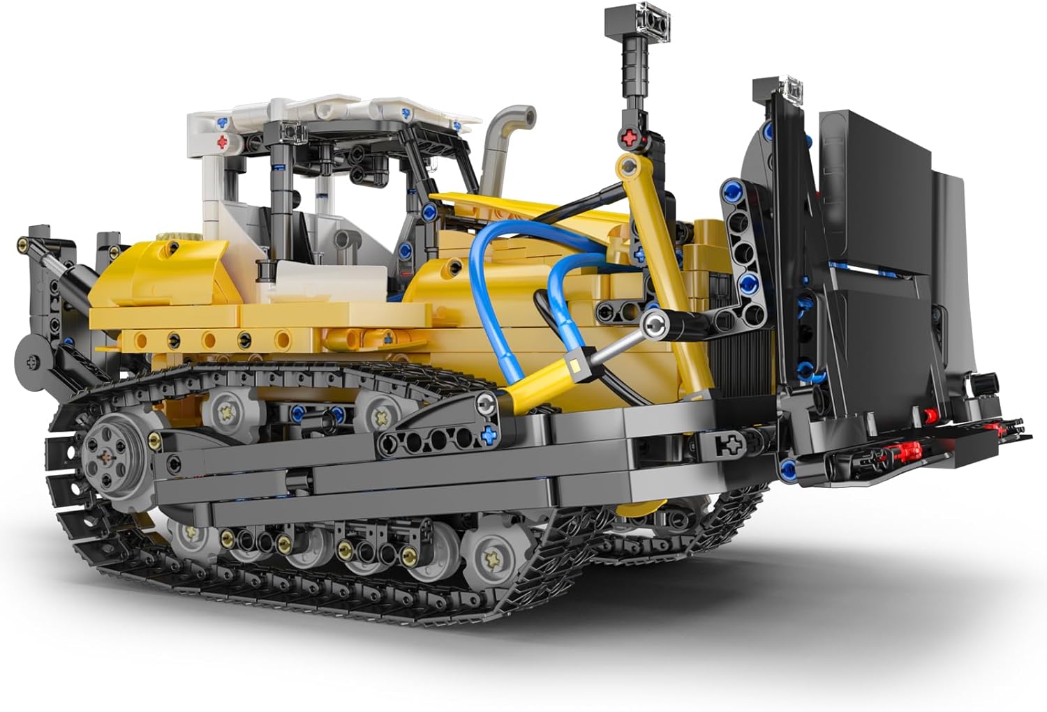 Dieses detailgetreue Modell des PR756 Bulldozers bildet alle wesentlichen Elemente eines modernen Baufahrzeugs ab – von der breiten Hebeschaufel über den Heckaufreißer bis hin zum verstärkten Kabinenrahmen. Der Bulldozer besticht durch sein markantes gelb-schwarzes Industriedesign, akzentuiert durch funktionale blaue Pneumatikschläuche, die dem gesamten Rahmen ein realistisches Hydraulik-Erscheinungsbild verleihen.