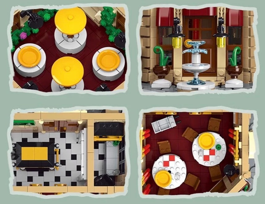 Mork setzt seine Kooperation mit dem MOC-Designer Oh So Jang, ein echten Star der Szene, mit diesem wunderschön im Barock-Stil gestaltetem Seafood-Restaurant weiter fort. Dieses Flying Lobster getaufte Gebäude überzeugt durch seine komplexe, barocke Fassade und ein hohes Maß an Modularität. Der Innenraum strotzt nur so vor Details: Sei es die aufwendig gestaltete Bar im ersten Obergeschoss (welches sich zudem aufklappen lässt), oder die idyllisch gestaltete Dachterasse mit Holzkohle-Grill; die Detail-Verliebtheit des Designers ist auf jedem Quadrat-Milimeter zu erkennen. Der Bau ist mit seinem großen Umfang, den 4132 Teile so mit sich bringen, nichts für komplette Einsteiger, mit ein bisschen Erfahrung und Geduld bietet das Set jedoch mehrere Abende gefüllt mit tollem Bauspaß. Die Bauabschnitte sind relativ umfangreich. Das Set beinhaltet 26 bedruckte Teile.