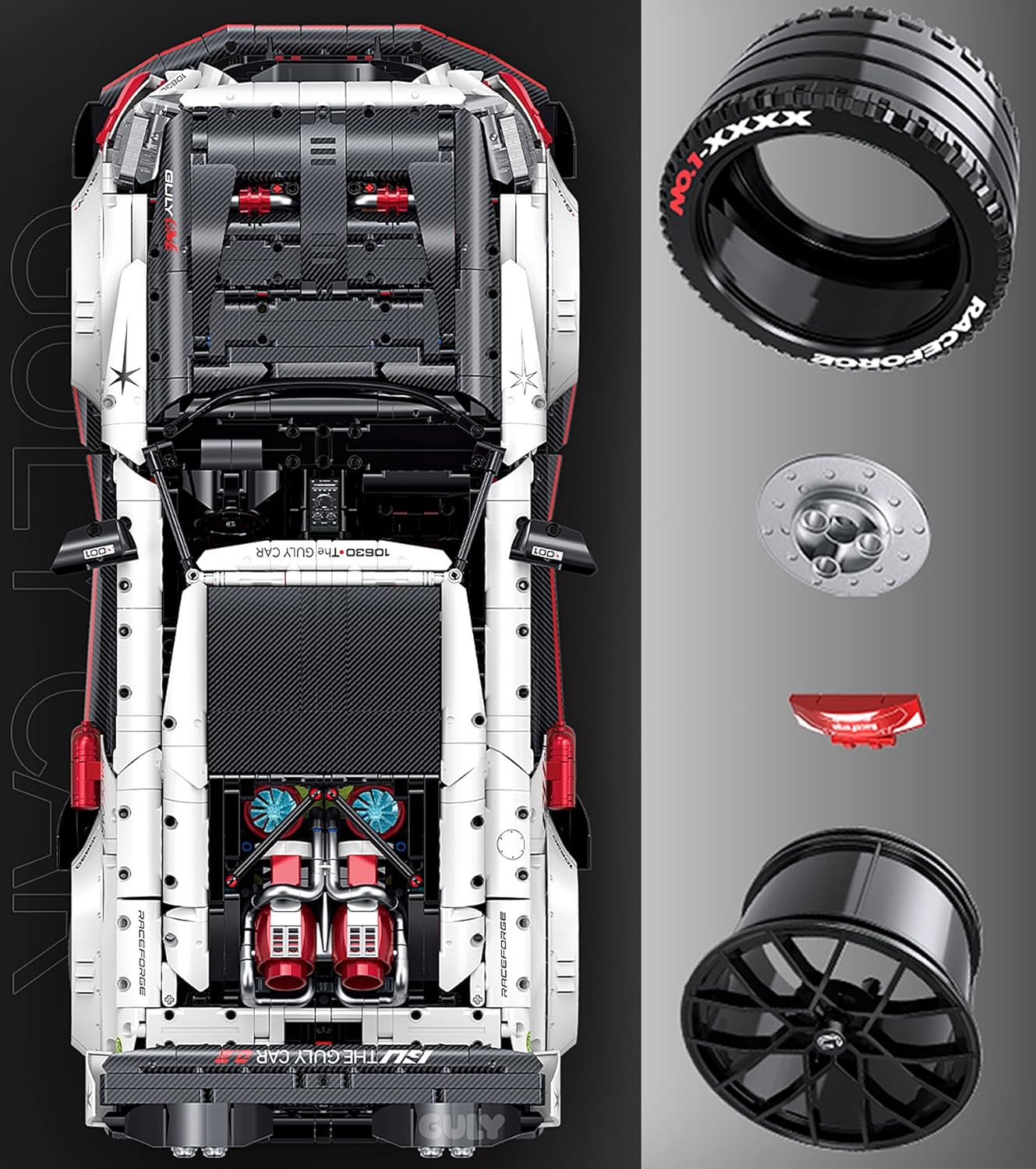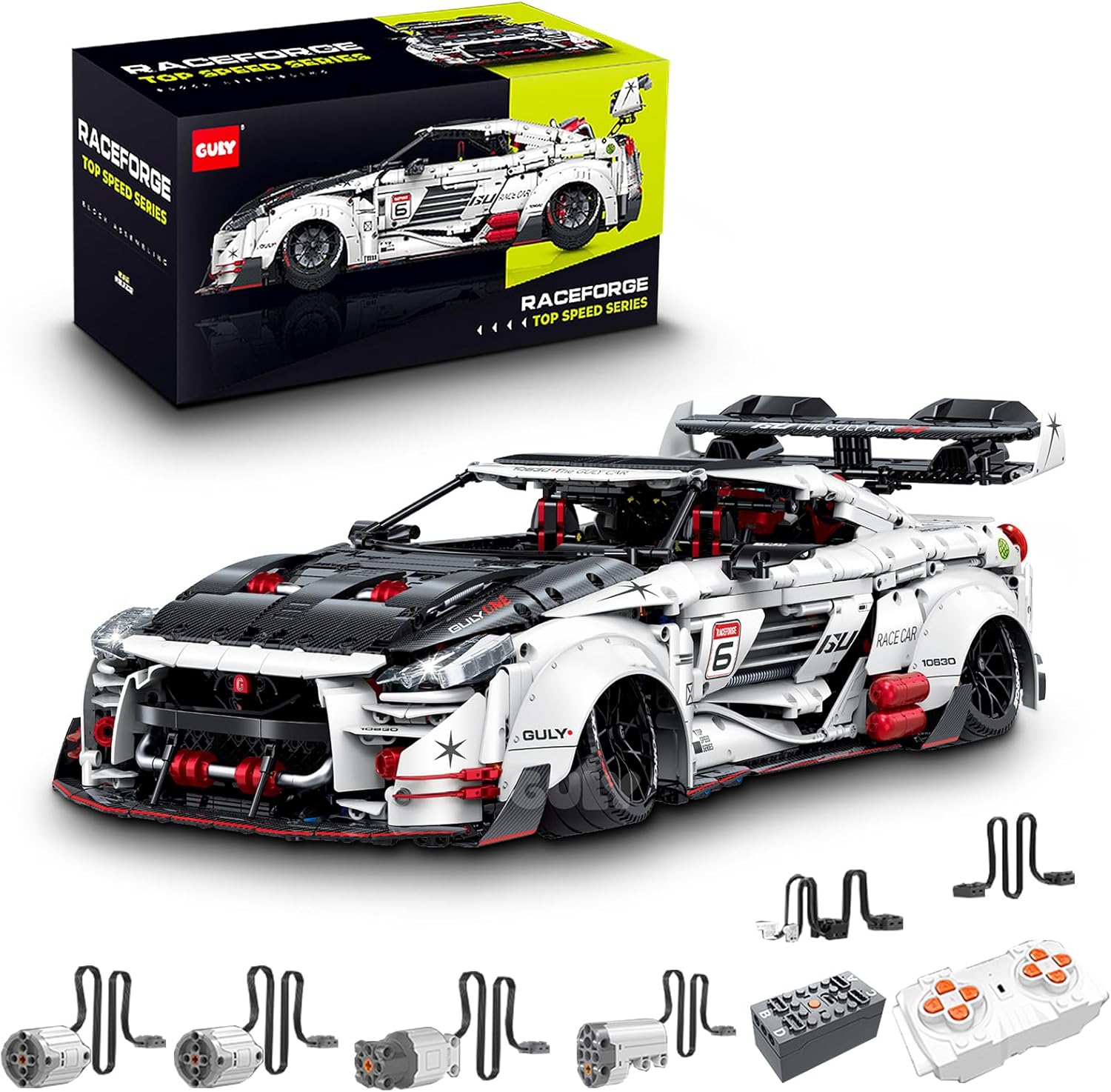 Der GULY 10630 GTR Sportwagen ist ein Technic-Modell im Maßstab 1:8, das die Essenz eines echten Nissan GTR einfängt. Mit seinen charakteristischen Frontscheinwerfern und dem aggressiven Profil liefert dieses GTR-Auto pure Rennenergie in jedem Stein.