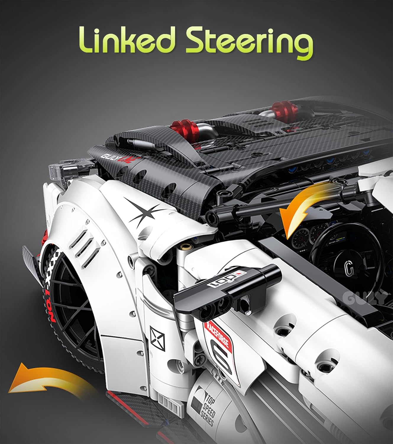Der GULY P1 HypercarSportwagen ist ein Technic-Modell im Maßstab 1:8, das die Essenz eines echten McLaren P1 einfängt. Mit seinen charakteristischen Frontscheinwerfern und dem aggressiven Profil liefert dieses P1-Auto pure Rennenergie in jedem Stein. Dynamic Version mit Power Functions. Steine von JieStar