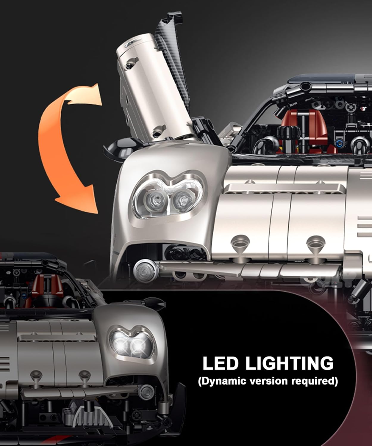 Dieses Model, dem Design des Mercedes AMG GT R nachempfund, bringt mit fast 2.900 Teilen eine gehörige Portion Bauspass und Technic-Funktionen mit sich. Static Version - ohne Power Functions, diese können aber nachgerüstet werden ( 1 Servomotor, 2 L-Motoren, 1 Akkubox 4.0, 1 Fernbedienung)