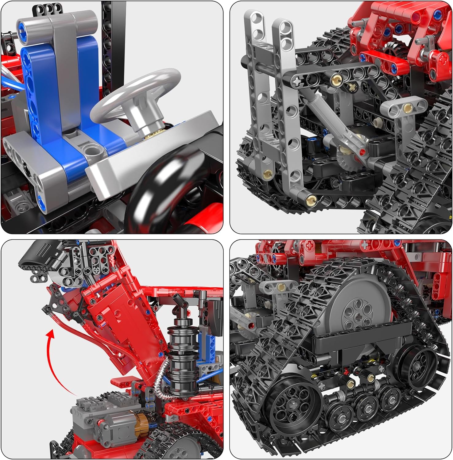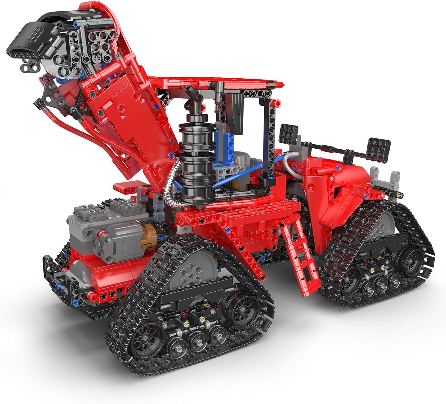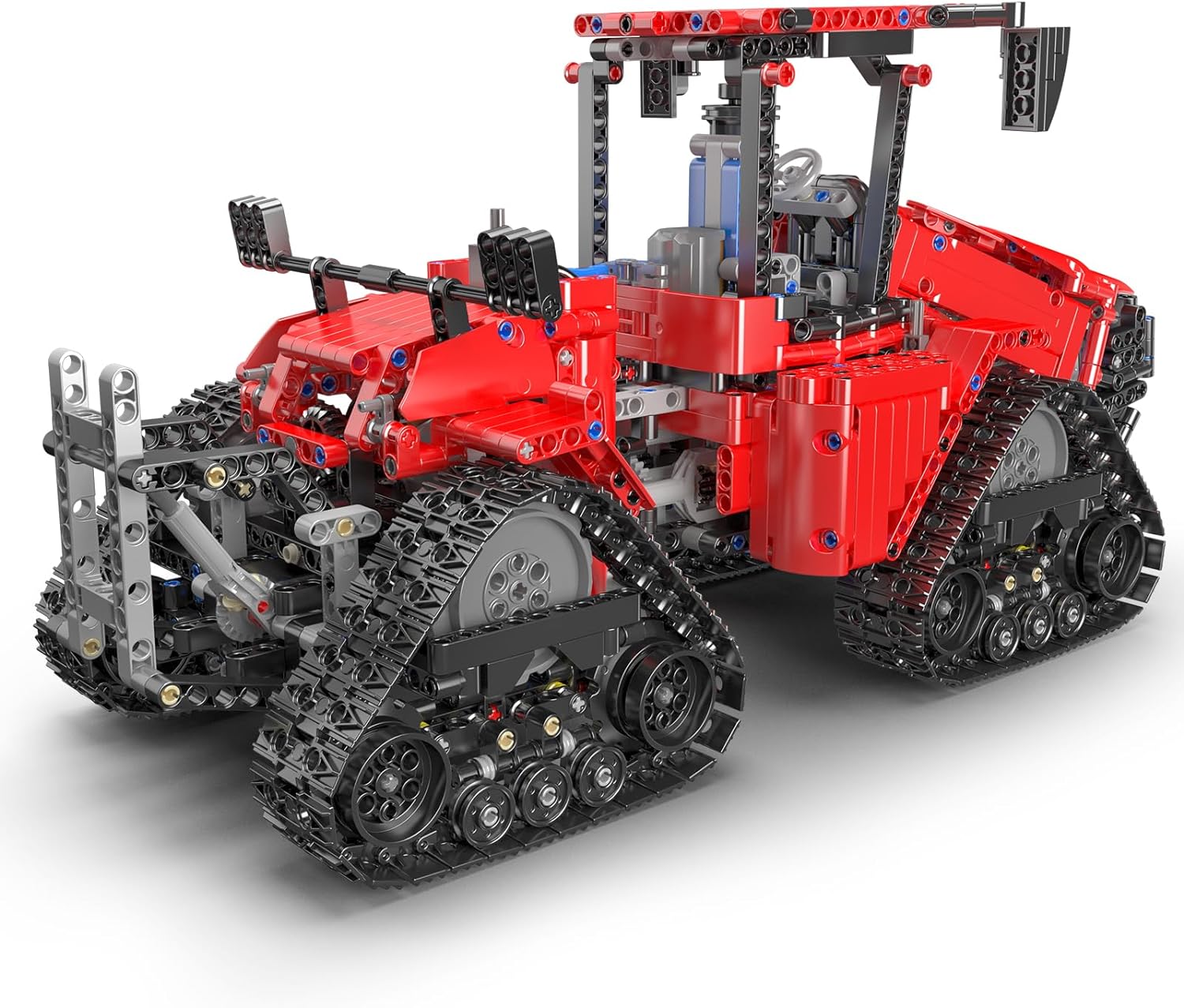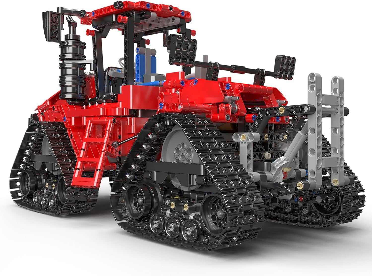Motorisierter Raupenschlepper mit vielen Funktionen. Vorbild für das Set ist der Challenger der Firma Claas.