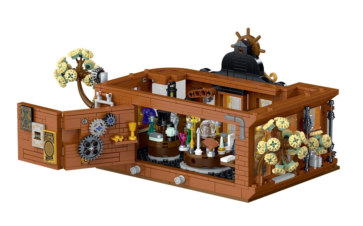 Mit diesem Zauberladen taucht Mork in die Steampunk-Ära ein. Steampunk ist ein charakteristisches Thema in der Fantasy-Literatur, das den Reiz von Science-Fiction und Fantasy miteinander verbindet. Dementsprechend bilden die fast 1900 Klemmbausteine einen mechanisch-industriellen Laden für astronomische, chemische und mineralische Forschungsmaterialien mit vielen tollen Features. Anspruchsvolles Set, nicht für Anfänger geeignet.