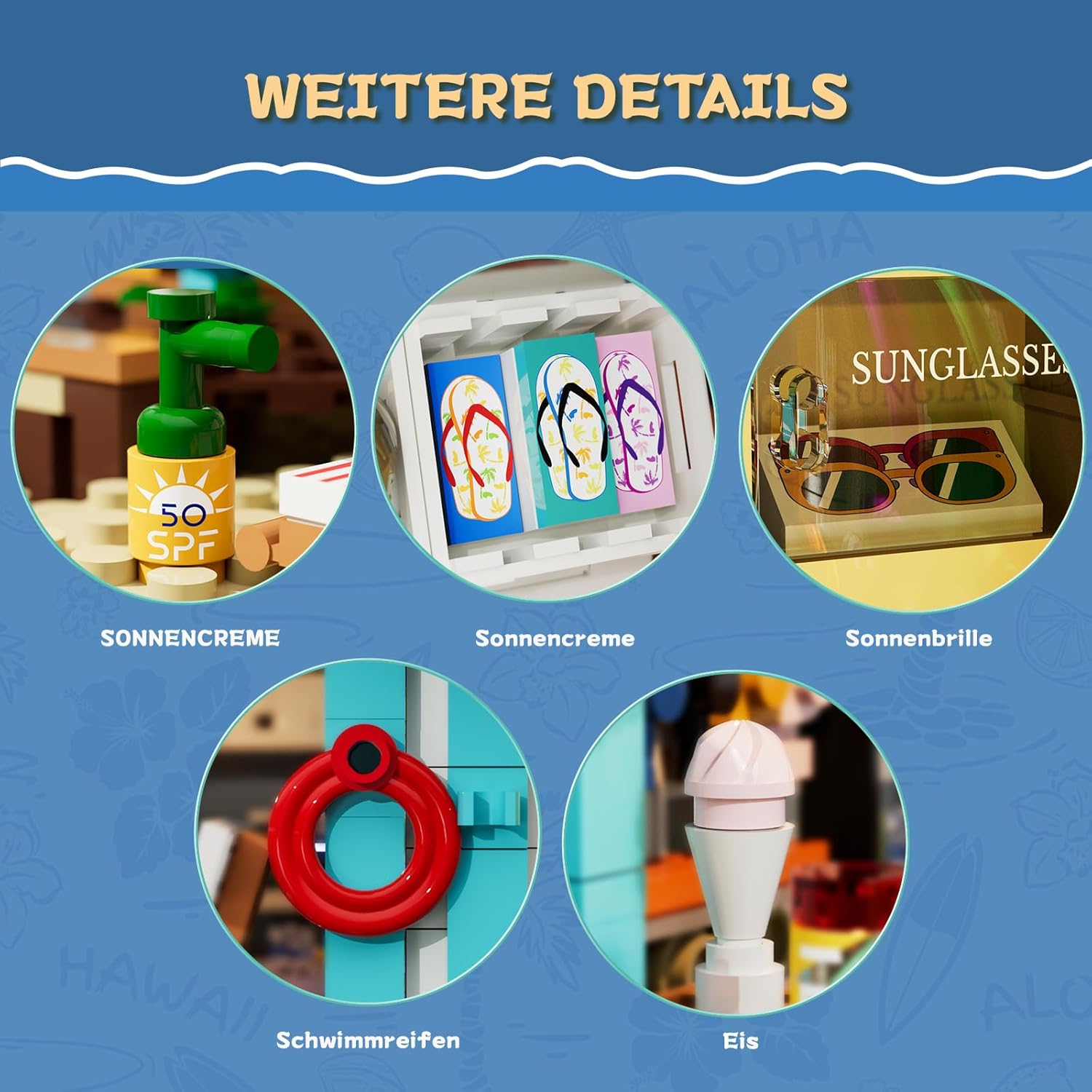 Inspiriert von einem tropischen Surfshop direkt am Meer. Helle Farben, Palmen und dieses leichte „Alles ist gut“-Gefühl sorgen sofort für echtes Küsten- und Urlaubsflair – fast so, als würdest du barfuß über warmen Sand laufen. Liebevolle Details wie ein Kreidetafel-Menü, Getränkedosen und Sonnenschirme machen die Szene richtig lebendig und geben dem Ganzen eine entspannte, realistische Atmosphäre. Kurz gesagt: ein kleines Stück Strandurlaub zum Bauen, Anschauen und einfach Abschalten