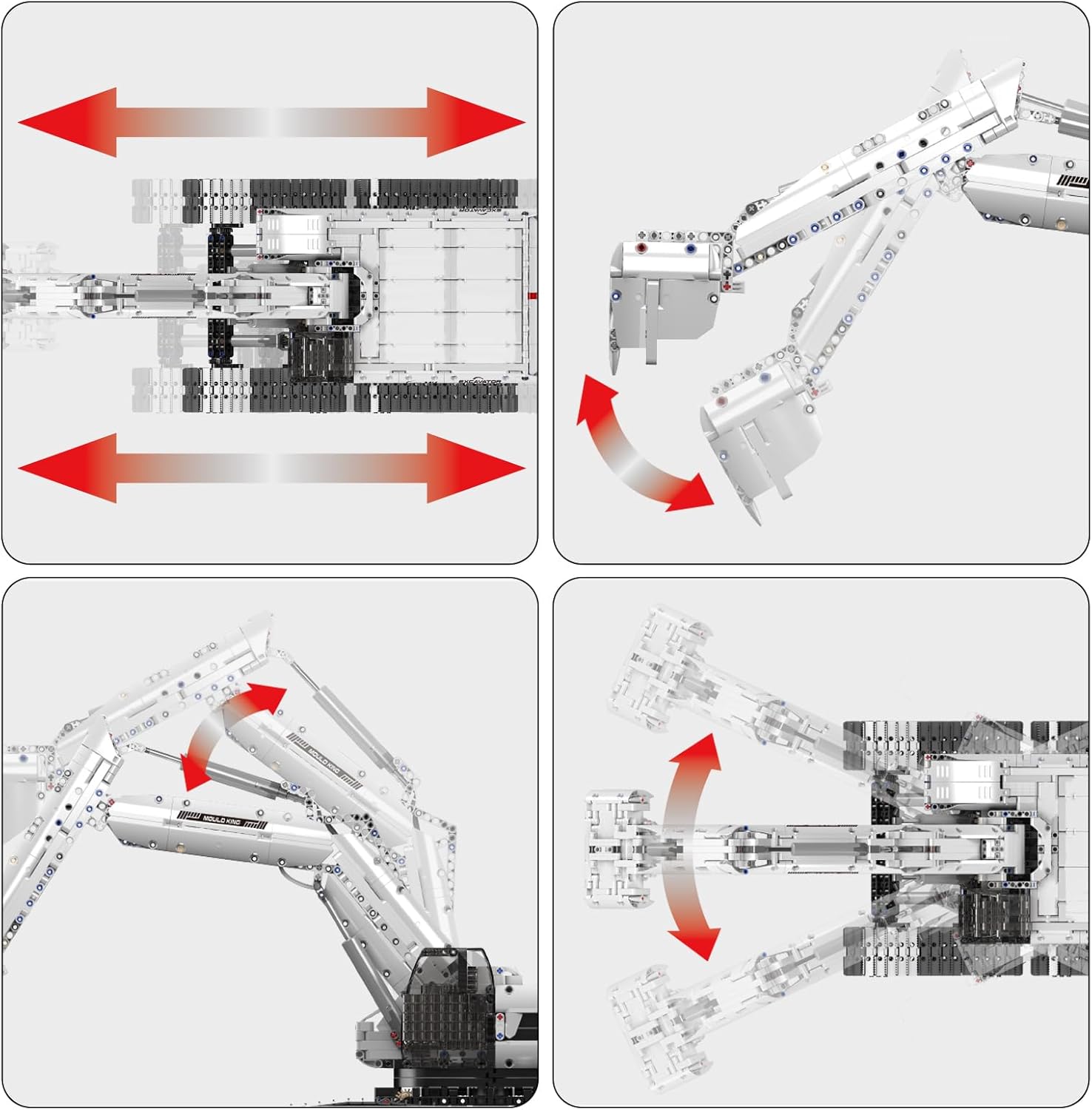 Pneumatische Building Demolition Machine 17062 von Mould King - baue einen massiven, über 70 cm langen Abbruchbagger Enthält 8 Motoren und über 12 pneumatische Teile: HXL-Motor x1, HM-Motor x1, Servo-Motor x4, XL-Motor x2, MKH6.0 Leistungsmodul x1, MK4.0 Leistungsmodul x1, 12+ Pneumatische Komponenten, MK Control+ App-Steuerung (keine physische Fernbedienung)
