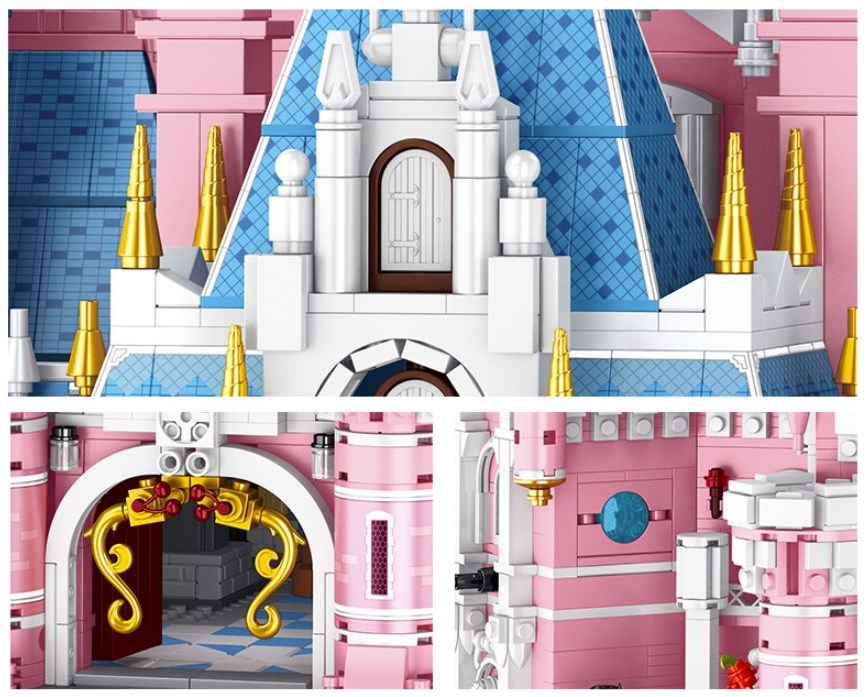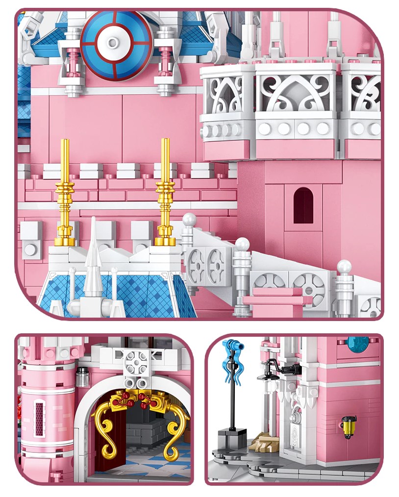 Das Dream Castle ist nicht ohne Grund eines der beliebtesten modularen Gebäude von Panlos. 10068 Klemmbausteine in gewohnt hochwertiger Panlos Qualität (viele Prints, keine Sticker) formen das riesige pinke Traumschloss. Die verschiedenen Etagen lassen sich einzeln entnehmen und sind mit zahlreiche Details gespickt.
