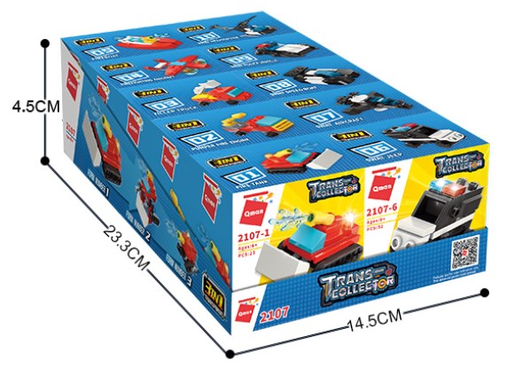 10 Minisets einzeln in Boxen verpackt, jeweils mit einer Anleitung für drei verschiedene Modelle.