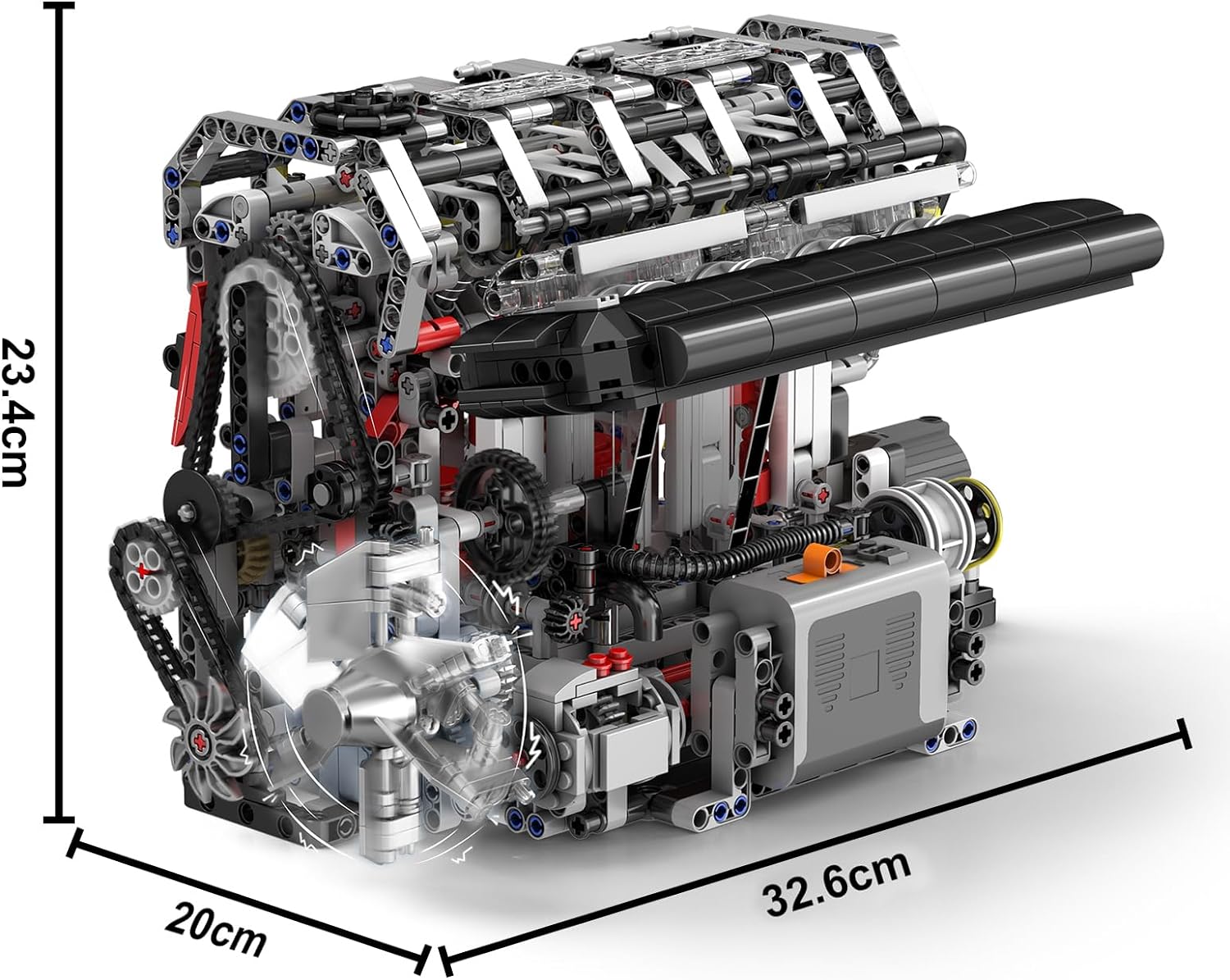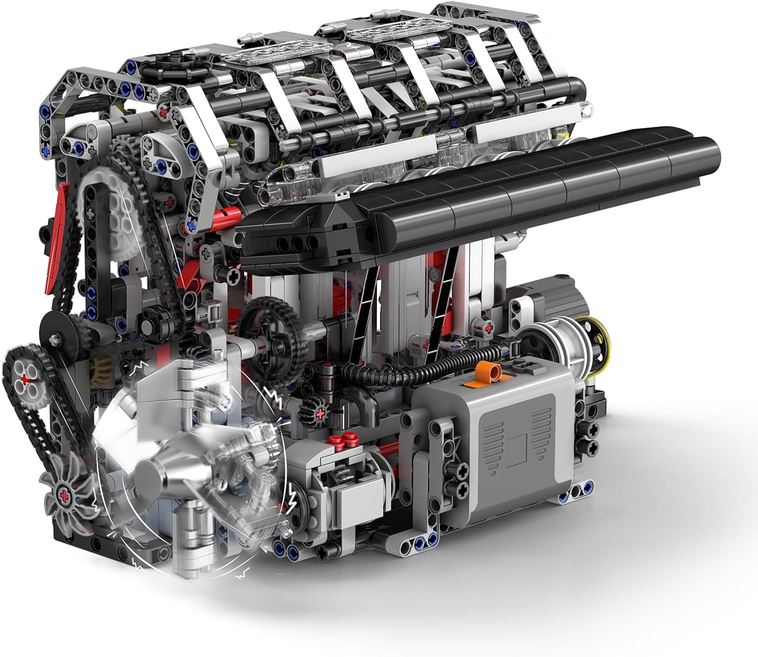 Motorgetriebenes Model eines V-8-Zylinder Verbrennungsmotors. Beinhaltet einen L-Motor und eine Batteriebox.