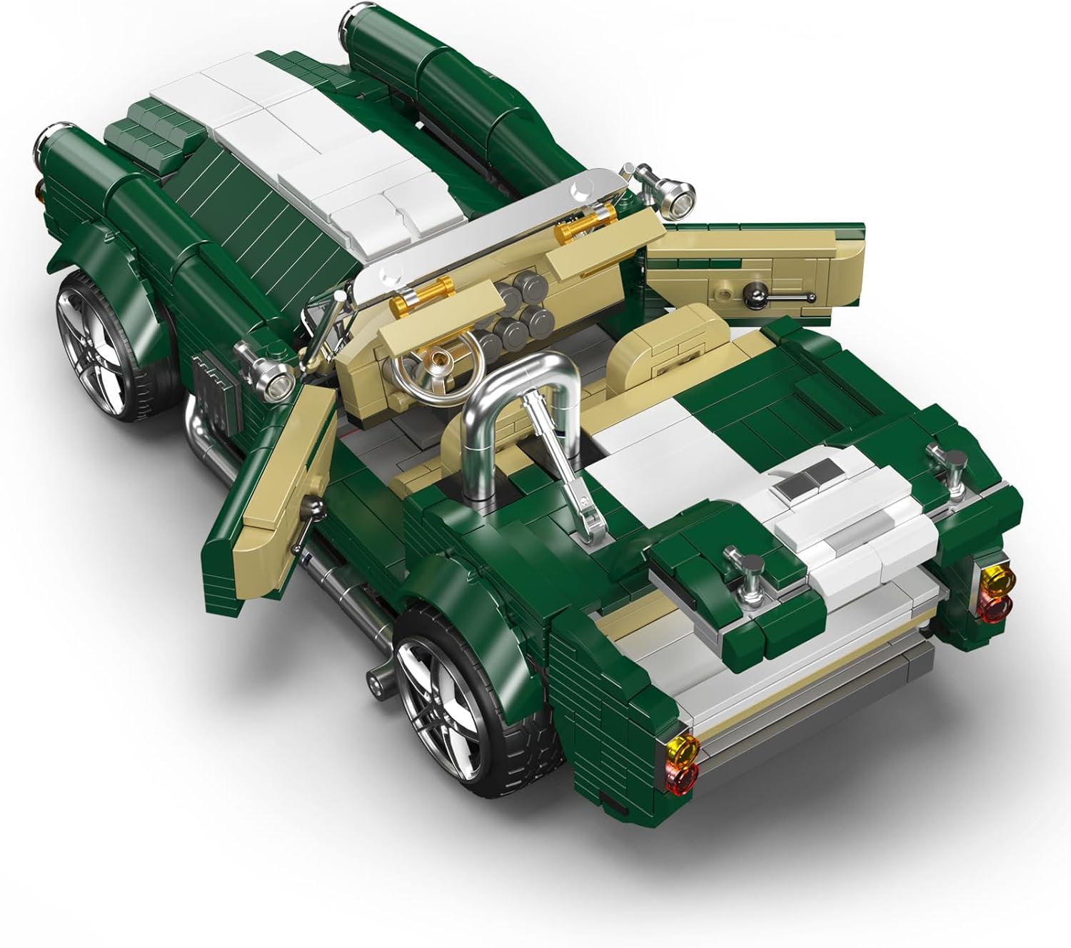Formschönes Modell eines amerikanischen Oldtimers. In der Creativ Idea-Reihe von Mould King finden sich viele gelungenen Sportwagen und Oldtimer-Modellen fürs Regal oder die Vitrine. Vor allem der bekannte MOC-Designer Firas Abu-Jaber sorgt für ästhetisch ansprechenden Nachschub. Funktionen: Türen, die Motorhaube und der Kofferraum lassen sich öffnen, das Dach abnehmen. Die ikonische Karosserie-Farbe, sowie die stylischen Felgen und die imposante Motorhaube runden den Gesamteindruck ab. Wie immer bei Mould King sind die Steine nach Bauabschnitten in Tüten vorsortiert und die Anleitung leicht verständlich.