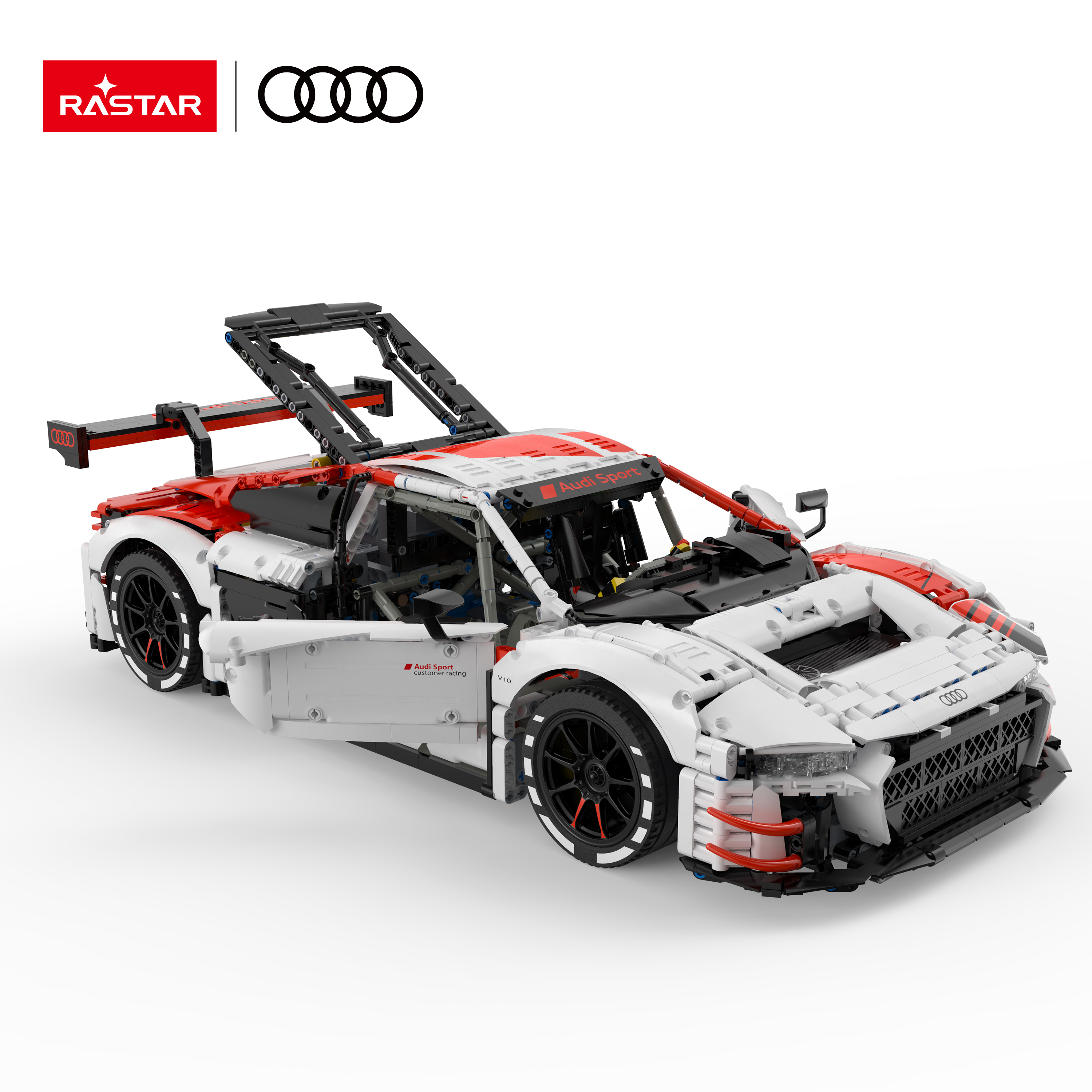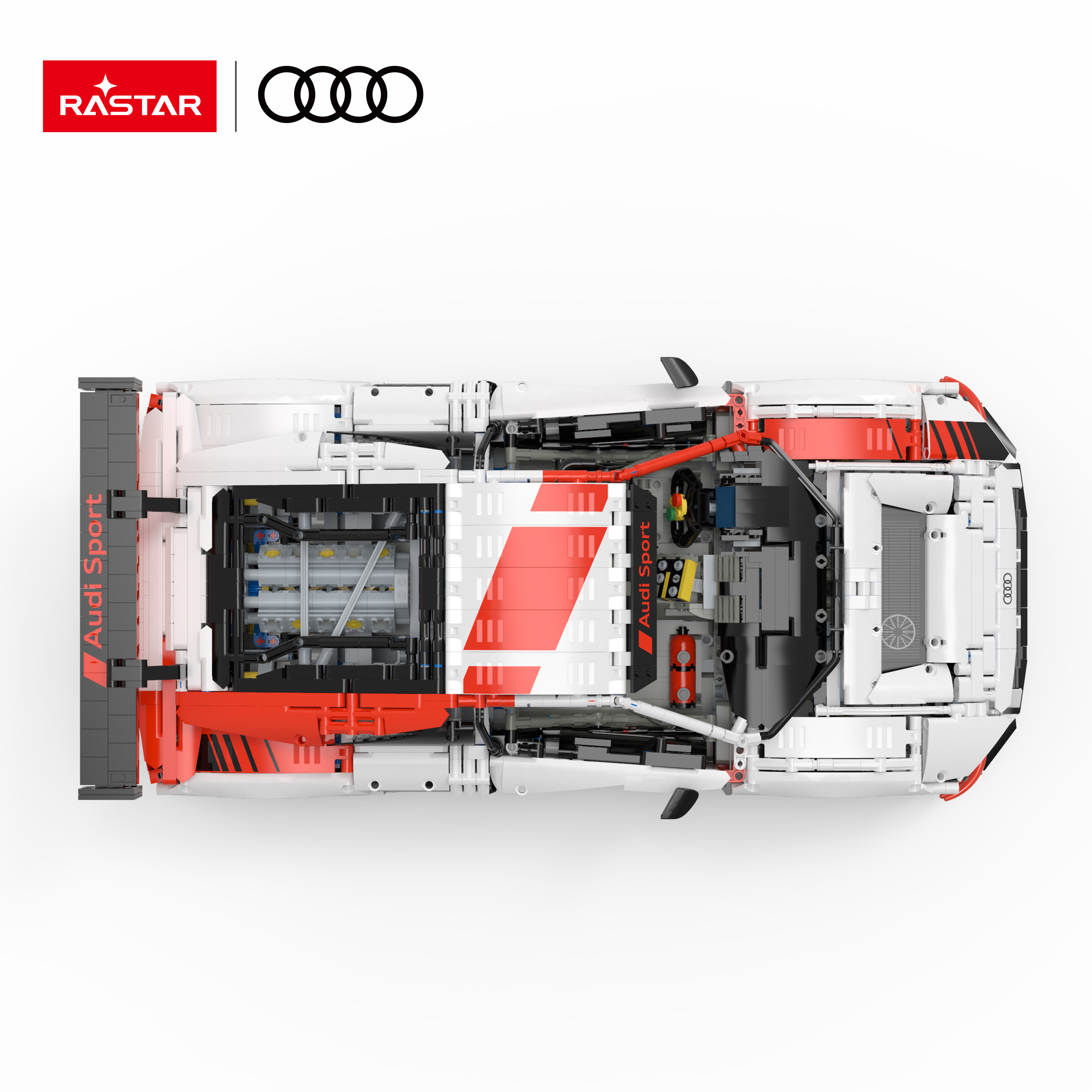 Die optionalen PowerFunctions können im Fahrzeug so verbaut werden, dass keine offen liegenden Kabel die Optik auch im Innenbereich stören. Des Weiteren hat Rastar versucht, durch den geschickten Einsatz von entsprechend farbigen Pins die typische Farbseuche zu vermeiden. Aufgebaut ist der Audi R8 LMS GT3 gut 56cm Lang und 27cm Breit. Türen und die mit Stoßdämpfern versehene Heckklappe lassen sich öffnen.