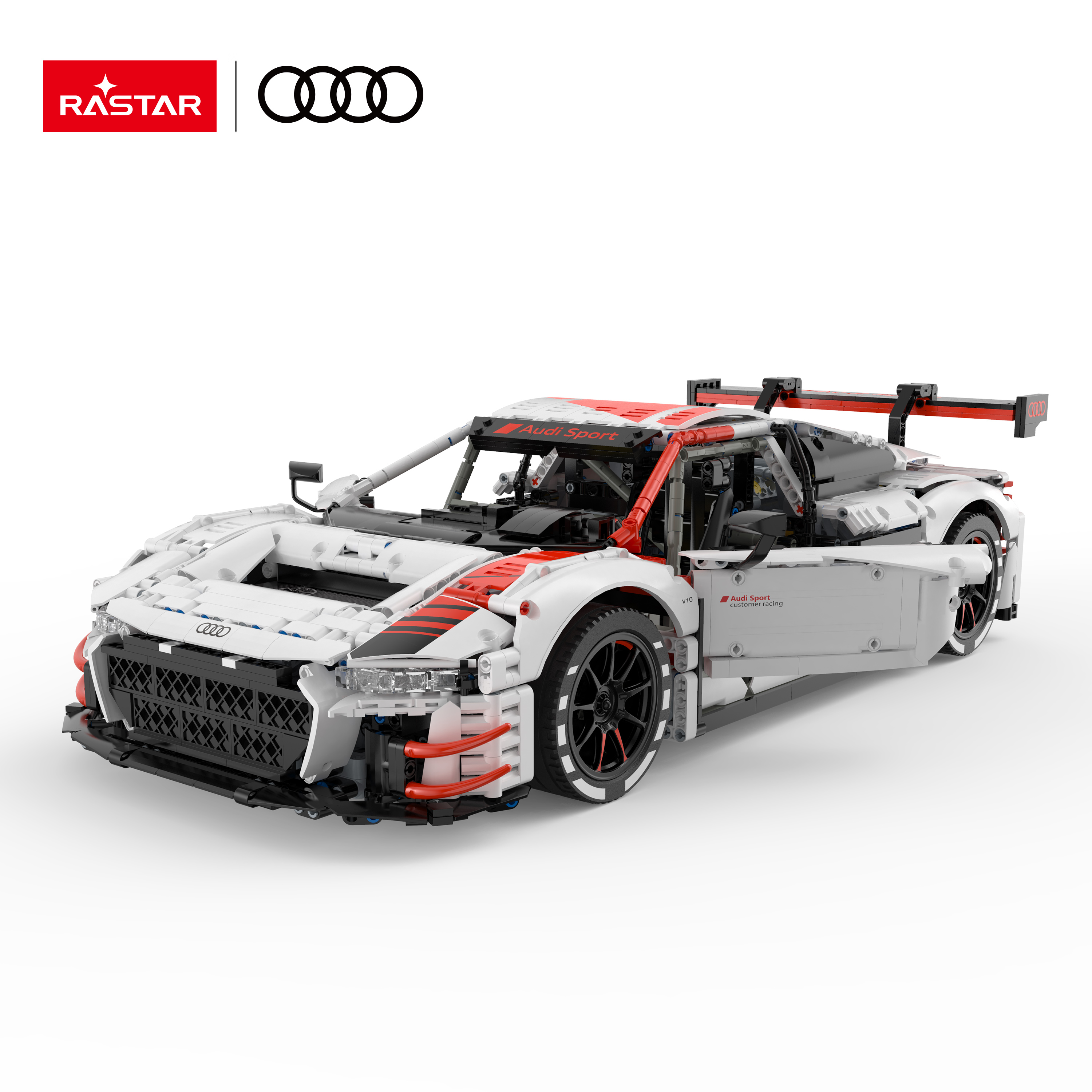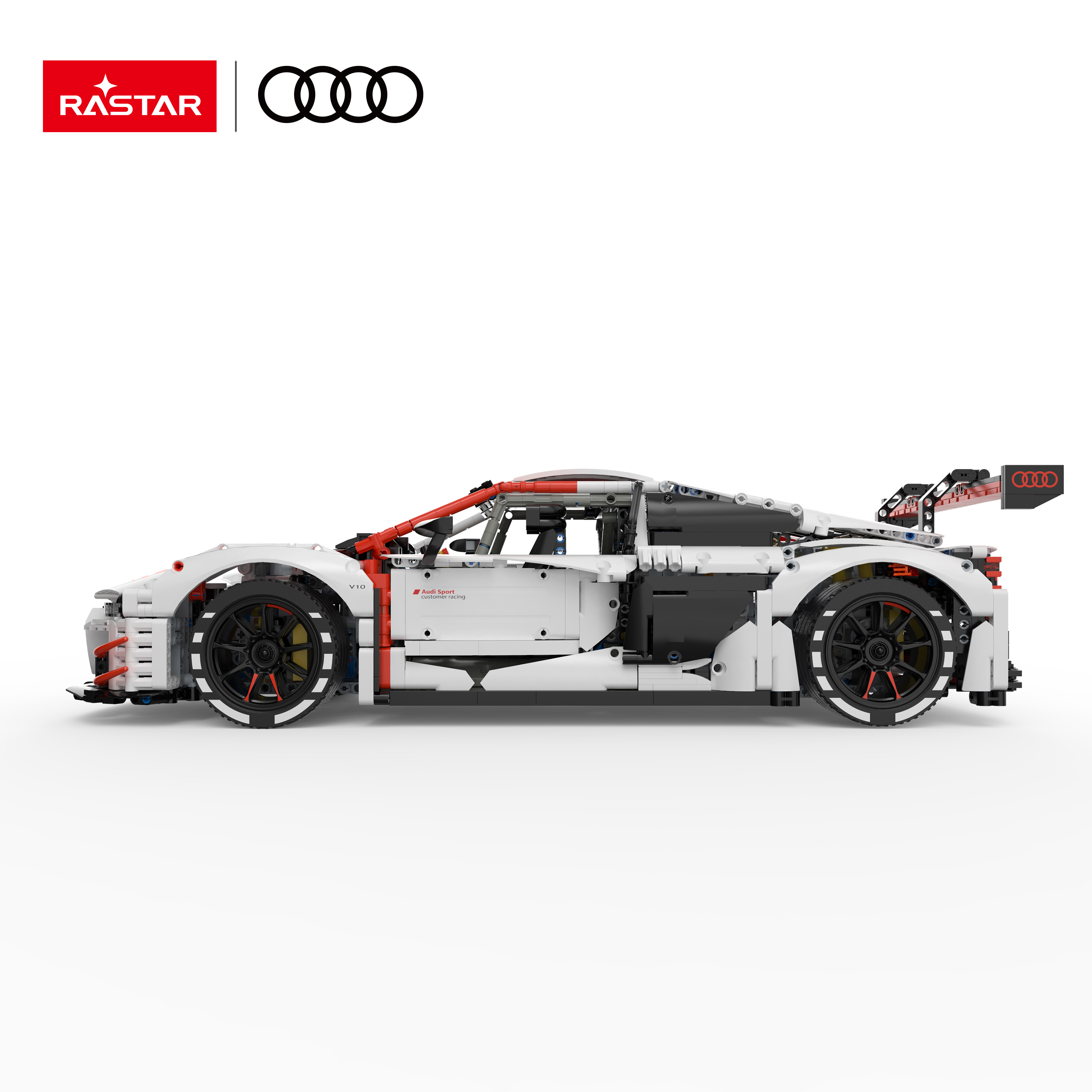 Verpackung defekt, Inhalt OK! Lizensiert von Audi! Der Audi R8 LMS GT3 von Rastar ist eine wirklich willkommene Wohltat fürs Auge. Obwohl Rastar bei dem Audi auf ein Getriebe verzichtet hat, bietet der Wagen im Maßstab 1:8 einige interessante Aspekte. So ist der Wagen optisch recht nah am original, was nicht zuletzt durch den geschickten Einsatz von Systembausteinen an den richtigen Stellen erreicht wurde. Die optionalen PowerFunctions können im Fahrzeug so verbaut werden, dass keine offen liegenden Kabel die Optik auch im Innenbereich stören. Des Weiteren hat Rastar versucht, durch den geschickten Einsatz von entsprechend farbigen Pins die typische Farbseuche zu vermeiden. Aufgebaut ist der Audi R8 LMS GT3 gut 56cm Lang und 27cm Breit. Türen und die mit Stoßdämpfern versehene Heckklappe lassen sich öffnen.Static Version ohne Power Functions.