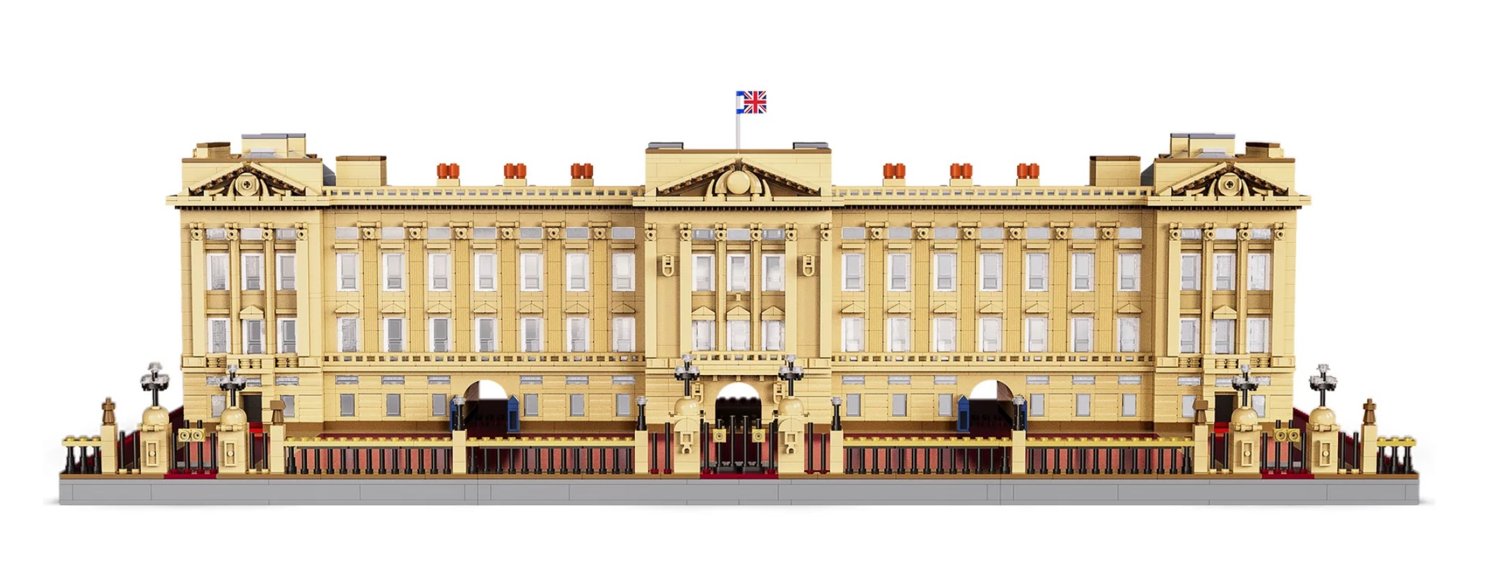 Mit einer Gesamtlänge von 83,2 cm präsentiert sich dieses Modell eben so eindrucksvoll wie das reale Vorbild. Das Set ist voll-modular aufgebaut und lässt sich in acht Teile aufteilen. Viele Details wie eine England-Flagge, die Wachhäuschen der Palast-Wache aber auch die einzigartige Fensterfront wurden liebevoll umgesetzt und garantieren einen lang anhaltenden Bauspass.