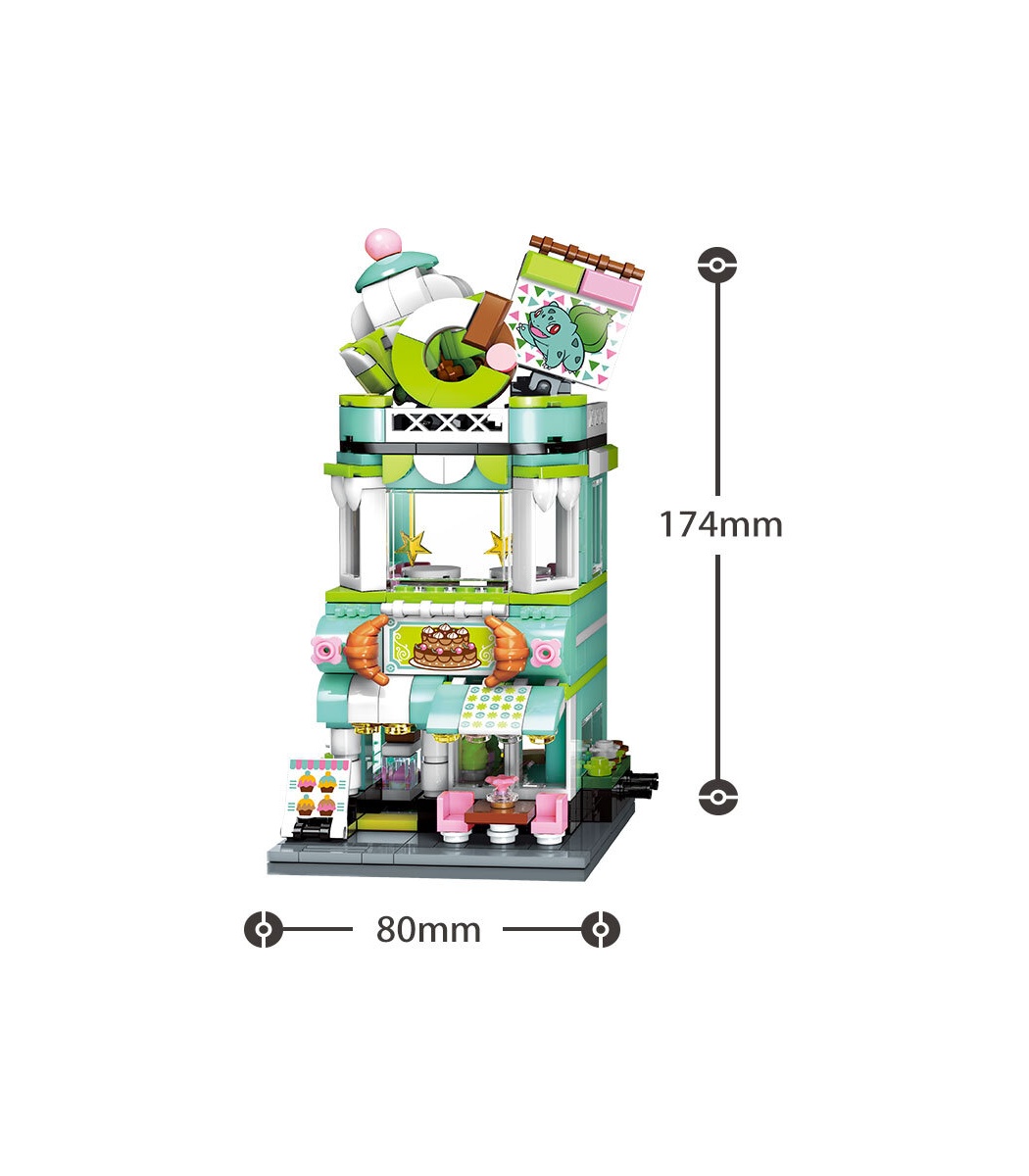 Keeppley City-Corner trifft Pokémon: Farbenfrohe Miniatur-Häuser mit unglaublicher Detailfülle. Jedes der vier Gebäude der Serie hat ein Cartoon-ähnliches Erscheinungsbild, das mit verschiedenen Pokémon-Charakteren zu interessanten Animationsszenen kombiniert werden kann. Treffe Dich mit Bulbasaur in seinem Laden auf ein feines Dessert.