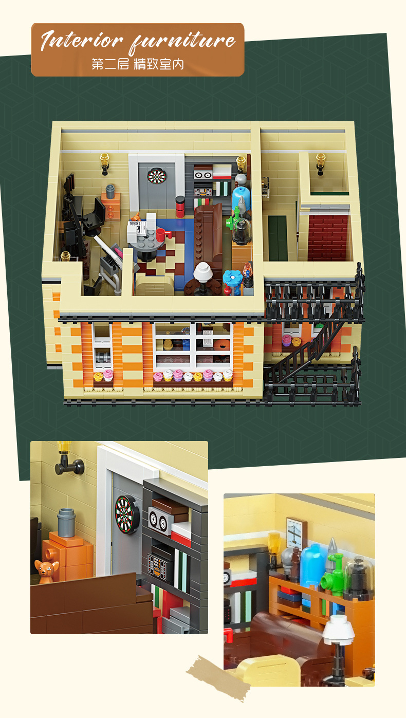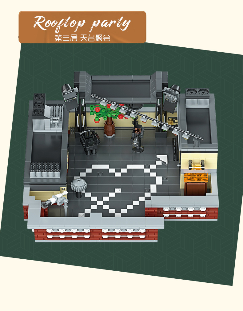 Mork setzt seine Kooperation mit dem MOC-Designer Oh So Jang, ein echten Star der Szene, mit diesem wunderschön im Barock-Stil gestaltetem Seafood-Restaurant weiter fort. Dieses Flying Lobster getaufte Gebäude überzeugt durch seine komplexe, barocke Fassade und ein hohes Maß an Modularität. Der Innenraum strotzt nur so vor Details: Sei es die aufwendig gestaltete Bar im ersten Obergeschoss (welches sich zudem aufklappen lässt), oder die idyllisch gestaltete Dachterasse mit Holzkohle-Grill; die Detail-Verliebtheit des Designers ist auf jedem Quadrat-Milimeter zu erkennen. Der Bau ist mit seinem großen Umfang, den 4132 Teile so mit sich bringen, nichts für komplette Einsteiger, mit ein bisschen Erfahrung und Geduld bietet das Set jedoch mehrere Abende gefüllt mit tollem Bauspaß. Die Bauabschnitte sind relativ umfangreich. Das Set beinhaltet 26 bedruckte Teile.