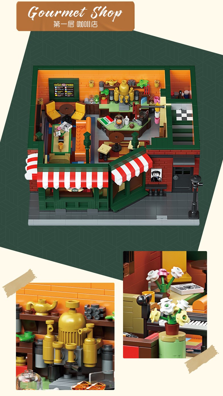 City Corner Serie 3 : Farbenfrohe historische Miniatur-Häuser mit unglaublicher Detailfülle. Kleine klassische Schönheit , die Innen wie Außen vor kreativen Bauelementen nur so strotzen. Alle Teile bedruckt, keine Aufkleber!