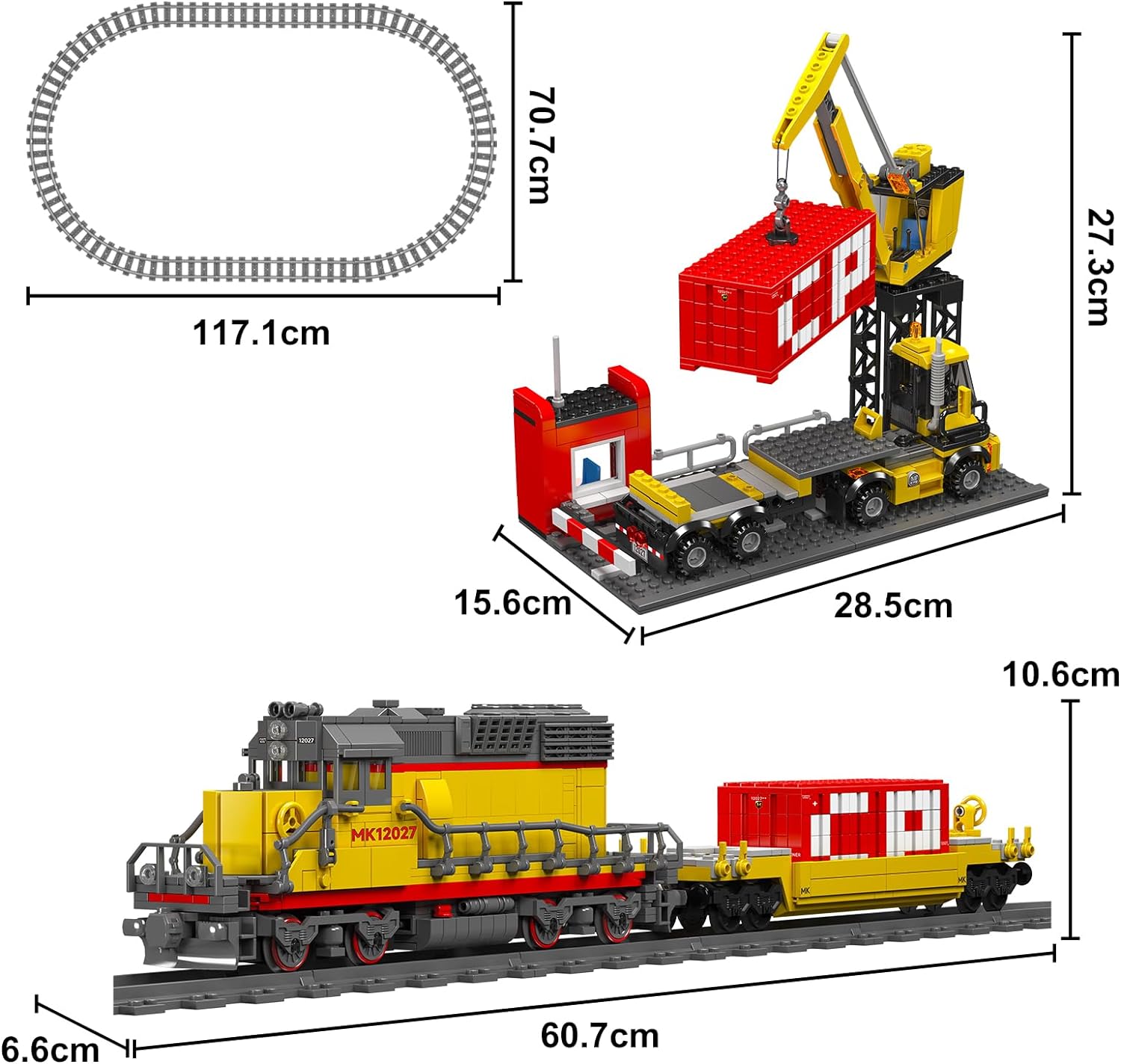 Formschönes und farblich ansprechendes Modell einer in China eingestzten Diesel-Elektro-Lok des Typs DF4B. Dank dem passenden Speisewagon mit Bordbistro und einem beschrankten Bahnübergang ergibt sich ein komplettes Eisenbahn-Spielset. Die Diesel-Elektro-Lok des Typs DF4B ist mit dem neuen Mould King RWY-Modul motorisiert und wird über die beiliegende Fernbedienung gesteuert. Das RYW-Modul vereint Antrieb, Empfänger und Akku in einem Modul, dass an den Form-Faktor des Eisenbahn-Motor angelehnt ist (aber 1 Noppen breiter). Wie bei der World Railway Reihe von Mould King üblich gehört zum Set auch noch ein Schienen-Oval (120cm x 80cm). Dieses lässt sich in ein vorhandenes Schienen-Netz integrieren, da voll kompatibel mit den führenden Herstellern. Bei dem Set handelt es sich um ein autorisiertes MOC des Eisenbahn-Spezialisten Marbleman Wie immer bei Mould King sind die Steine nach Bauabschnitten in Tüten vorsortiert und die Anleitung leicht verständlich.