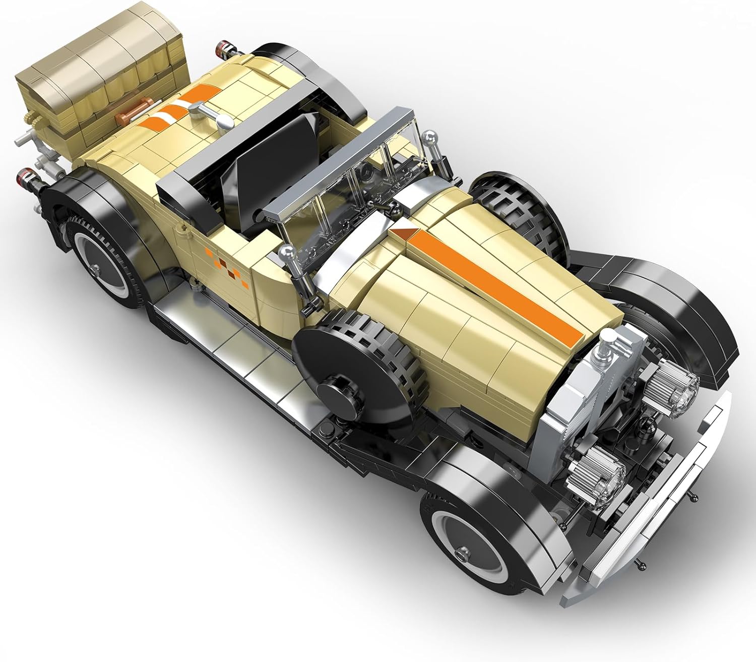 Dieser Oldtimer gehört zu einer ganzen Reihe von Automobil-Sammlerstücken für Erwachsene. Die detailgetreuen Autos sehen erstklassig aus und dürfen in keiner Vitrine fehlen. Zu den 868 Teilen des Sets gehören dutzende verchromte Noppensteine, die den Zierleisten, dem Kühlergrill oder den Radkappen einen besonderen Glanz verleihen.