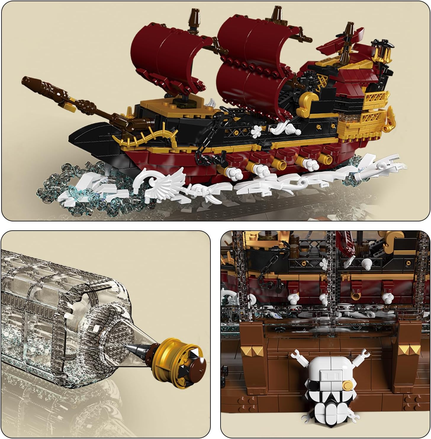 Lass dich anheuern auf dem 3-Master "Queen Anne's Revenge" - ein tolles Piratenschiff mit 14 Kanonen und vielen Details. Der starke Rammsporn und die mächtige Kanonen lassen selbst die Schiffe der Königlichen Flotte erzittern.
