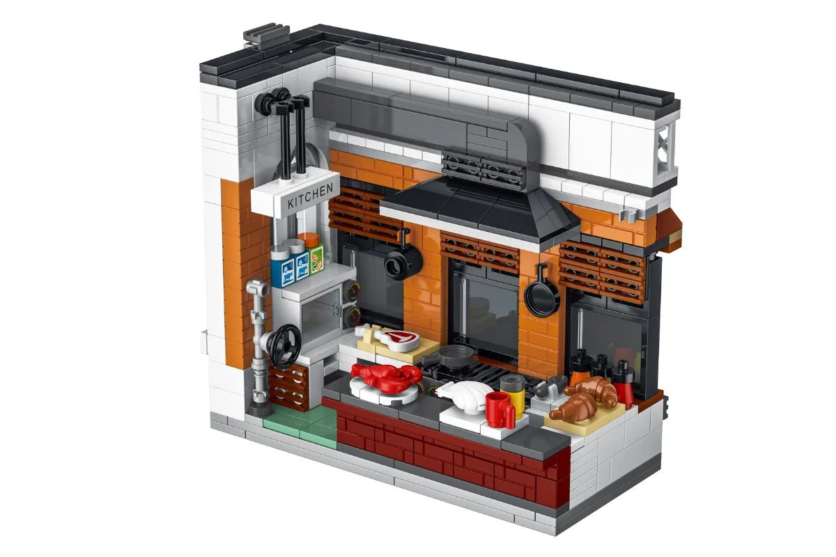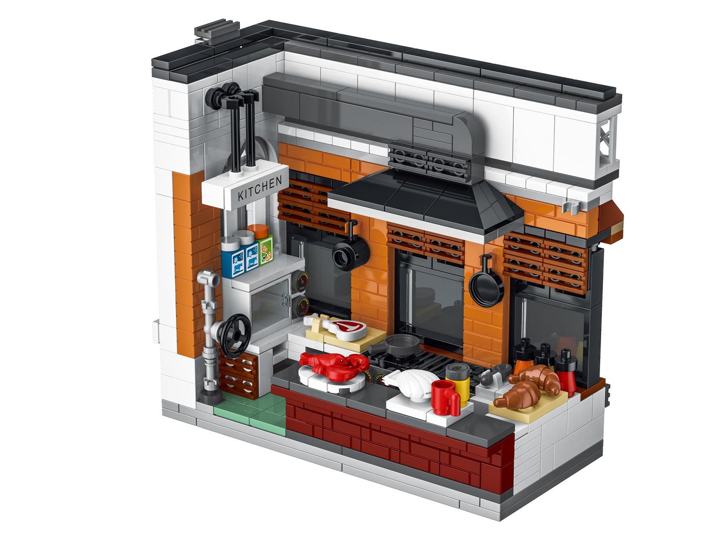 Parisian Restaurant - ein Pariser Restaurant in einem imposanten, modularem Gebäude aus Klemmbausteinen aus über 3100 Teilen. Ein außergewöhnliches und detailreiches Gebäude. Das Parisian Restaurant fügt sich schön in eine Stadt oder Straße ein, und der Bürgersteig davor kann nach Belieben verändert werden.