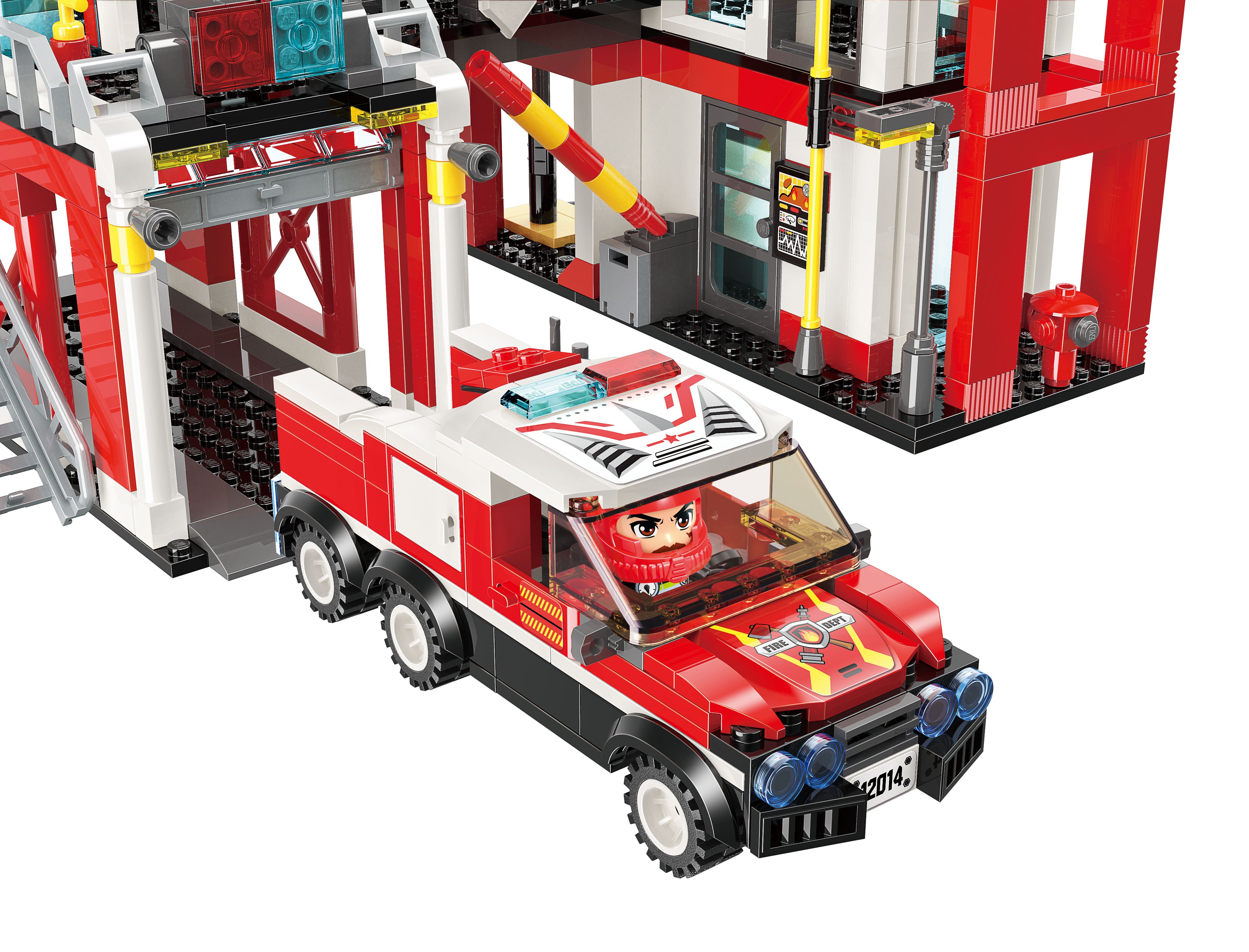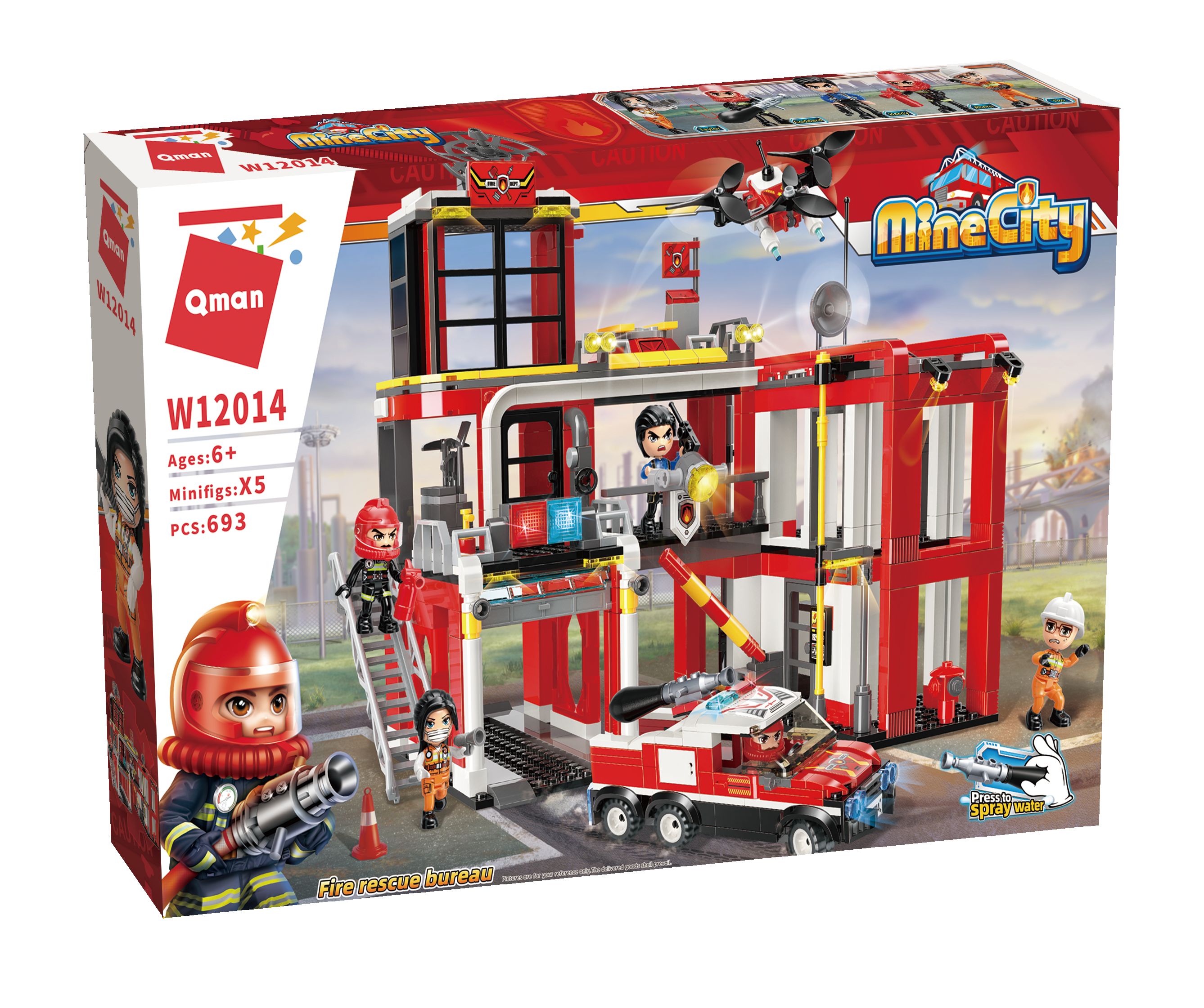 Mit Kommandoturm, Büros und Garage hat die Feuerwehr hier alles was sie braucht um in MineCity für Sicherheit zu sorgen. Überwache Deine Stadt im Kommandoturm, lass das Löschfahrzeug aus der Garage ausrücken und lösche das Feuer.