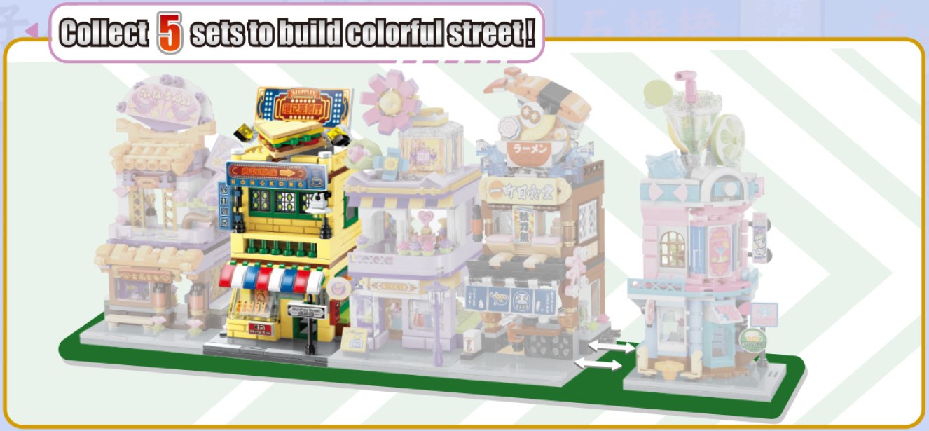 Noch süßer geht's kaum, vom Gehsteig bis zum Schornstein ein einziger Zuckertraum. City Corner Serie : Farbenfrohe Miniatur-Häuser mit unglaublicher Detailfülle. Kleine kombinierbare Gebäude, die Innen wie Außen vor kreativen Bauelementen nur so strotzen. Alle Teile bedruckt, keine Aufkleber!