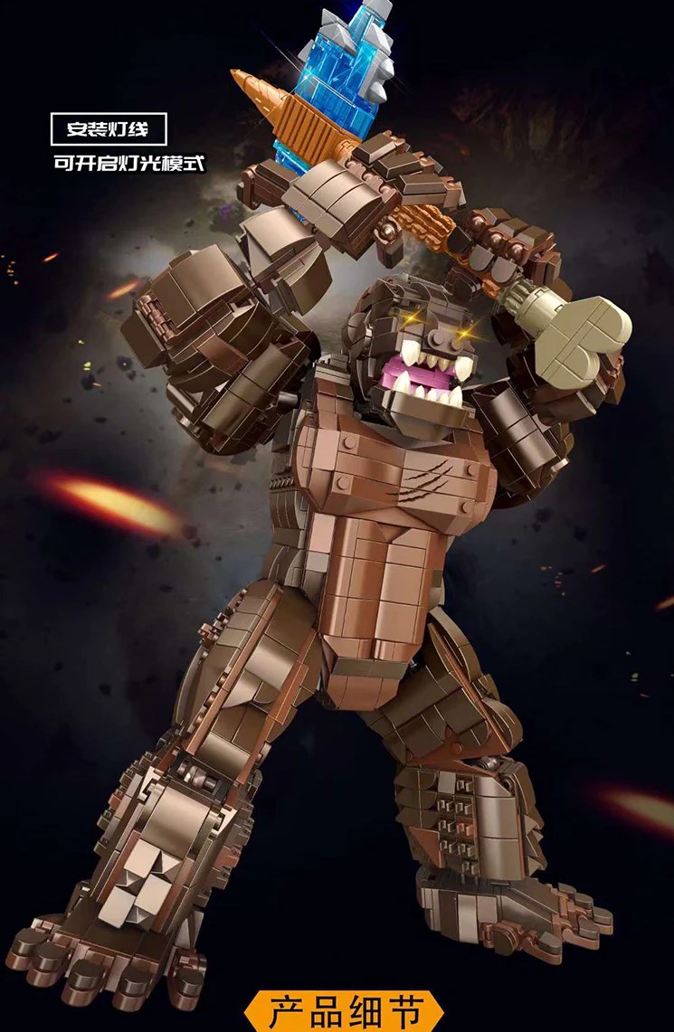 Panlos bringt seine offiziell lizenzierte Version von King Kong in Deine Klemmbaustein-Stadt. Aber pass auf, dass er deine Stadt nicht zerstört oder lass ihn gegen Godzilla kämpfen.