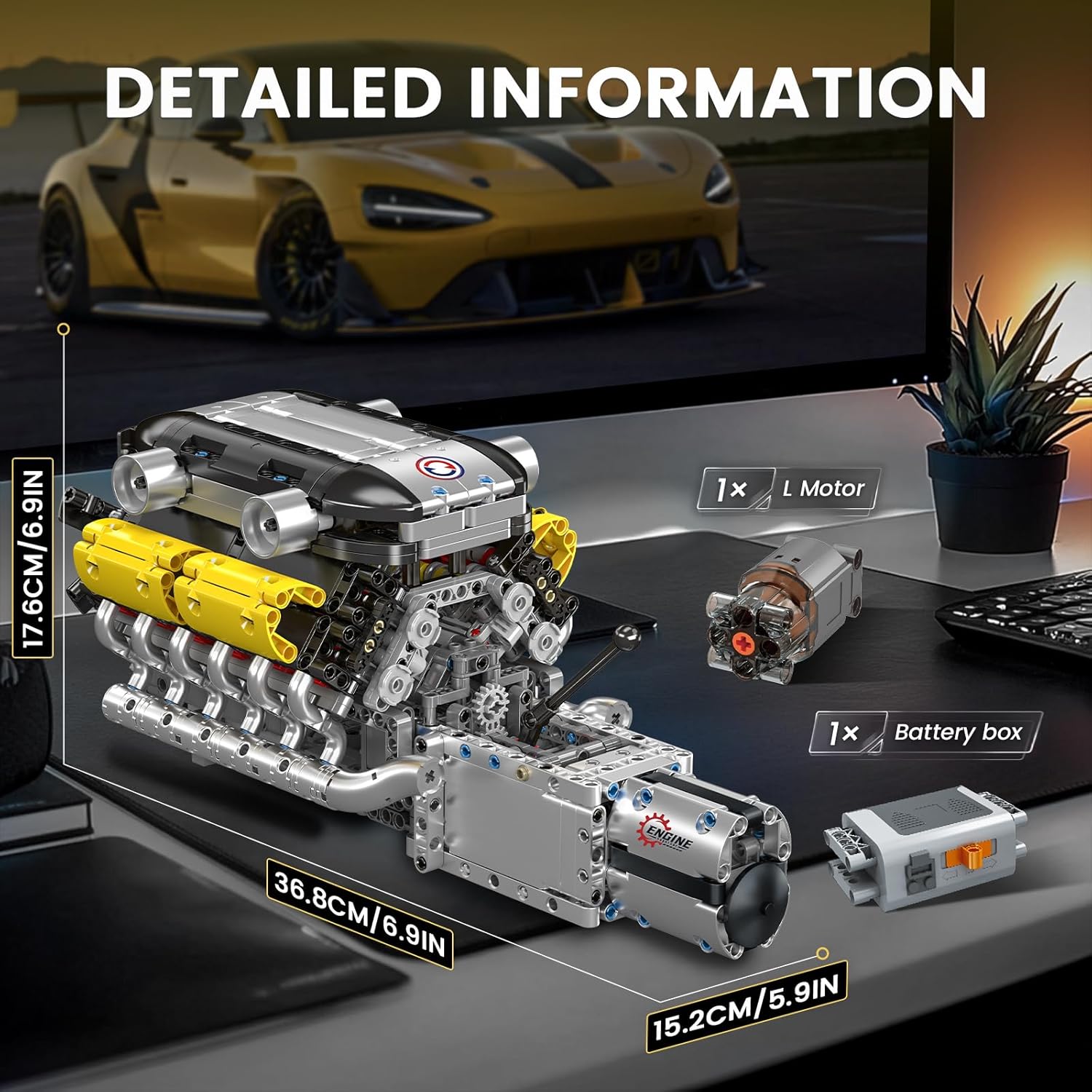 Der Lambo V12 Engine Motor von Mould King ist ein motorgetriebenes Modell eines beeindruckenden V12-Zylinder Verbrennungsmotors, das für Technik- und Automobilenthusiasten ab 14 Jahren konzipiert wurde. Dieses Set enthält einen L-Motor sowie eine Batteriebox, die es ermöglicht