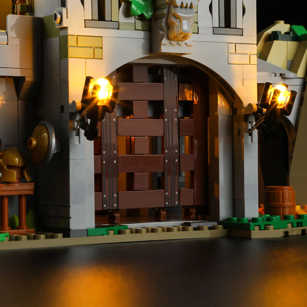 10 Lichtpunkte schaffen stimmungsvolle Akzente – von flackernden Fackeln bis zum nächtlichen Lagerfeuer auf dem Turm. Inklusive Figuren & Zubehör: 4 Minifiguren, Ochsengespann mit Wagen und eine große Armbrust bringen Leben in deine Szene