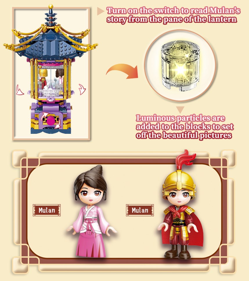 Drehbare Laterne (inkl. Leuchtstein) mit Mulan als normalem Mädchen und als legendärer Kriegerin.