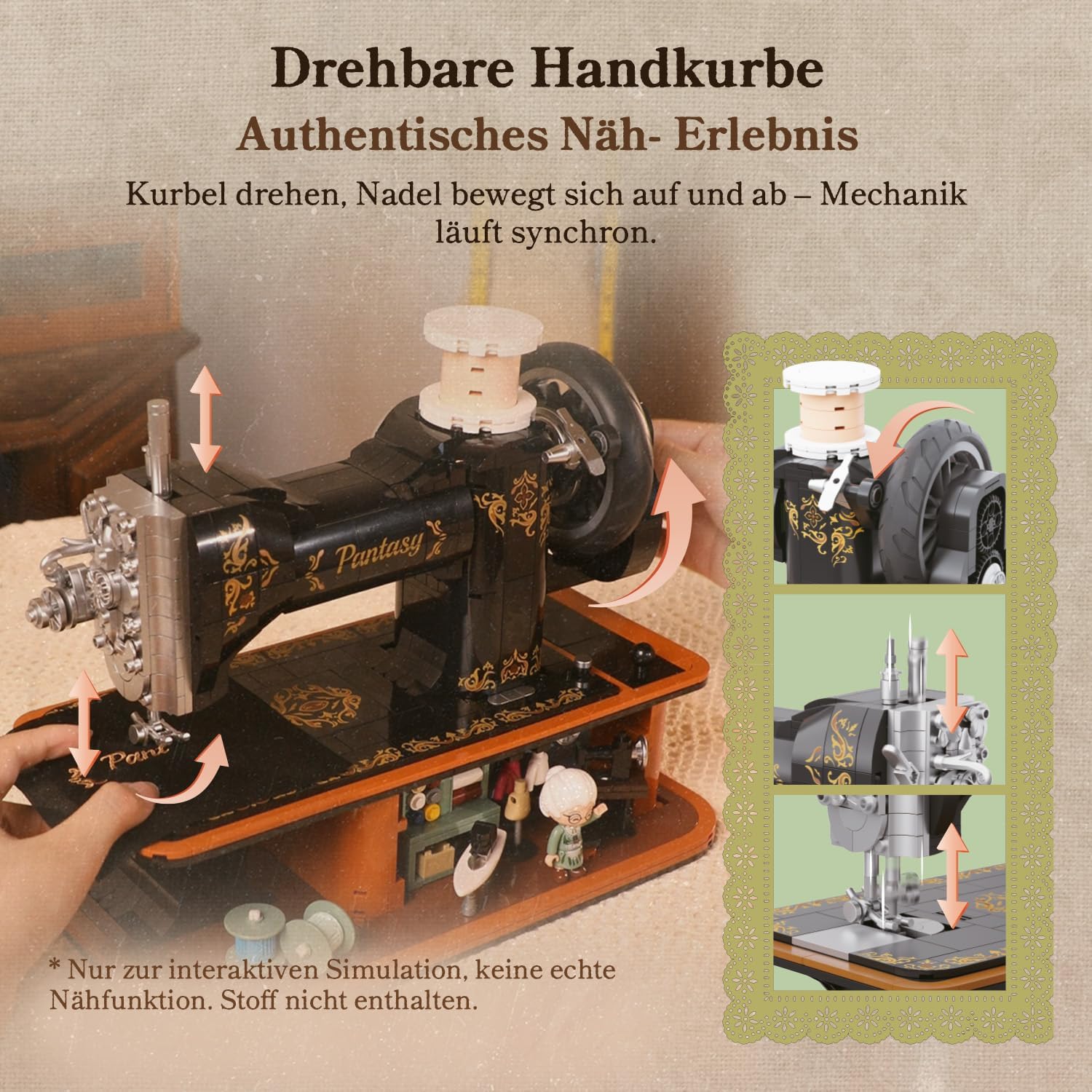 Die elegant geschwungene Form in tiefem Schwarz, verziert mit feinen Ornamenten, sieht nicht nur edel aus, sondern lässt fast schon das rhythmische Klackern aus Omas Nähstube wieder aufleben. Kurz gesagt: ein bisschen Nostalgie, ein Hauch Geschichte und ganz viel Bau-Spaß – perfekt kombiniert mit moderner Bautechnik. Und keine Sorge: Du brauchst dafür weder Garn noch Nähkurs.