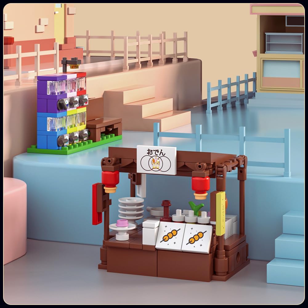 Hier zum Essen einen Oden Stand - ein typisches Japanisches Gericht und zum Spielen einen Gashapon Kapselspielwaren-Stand.