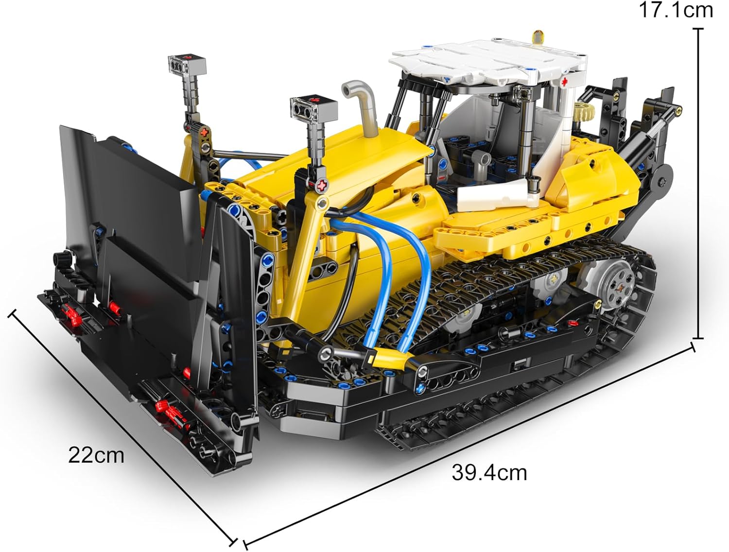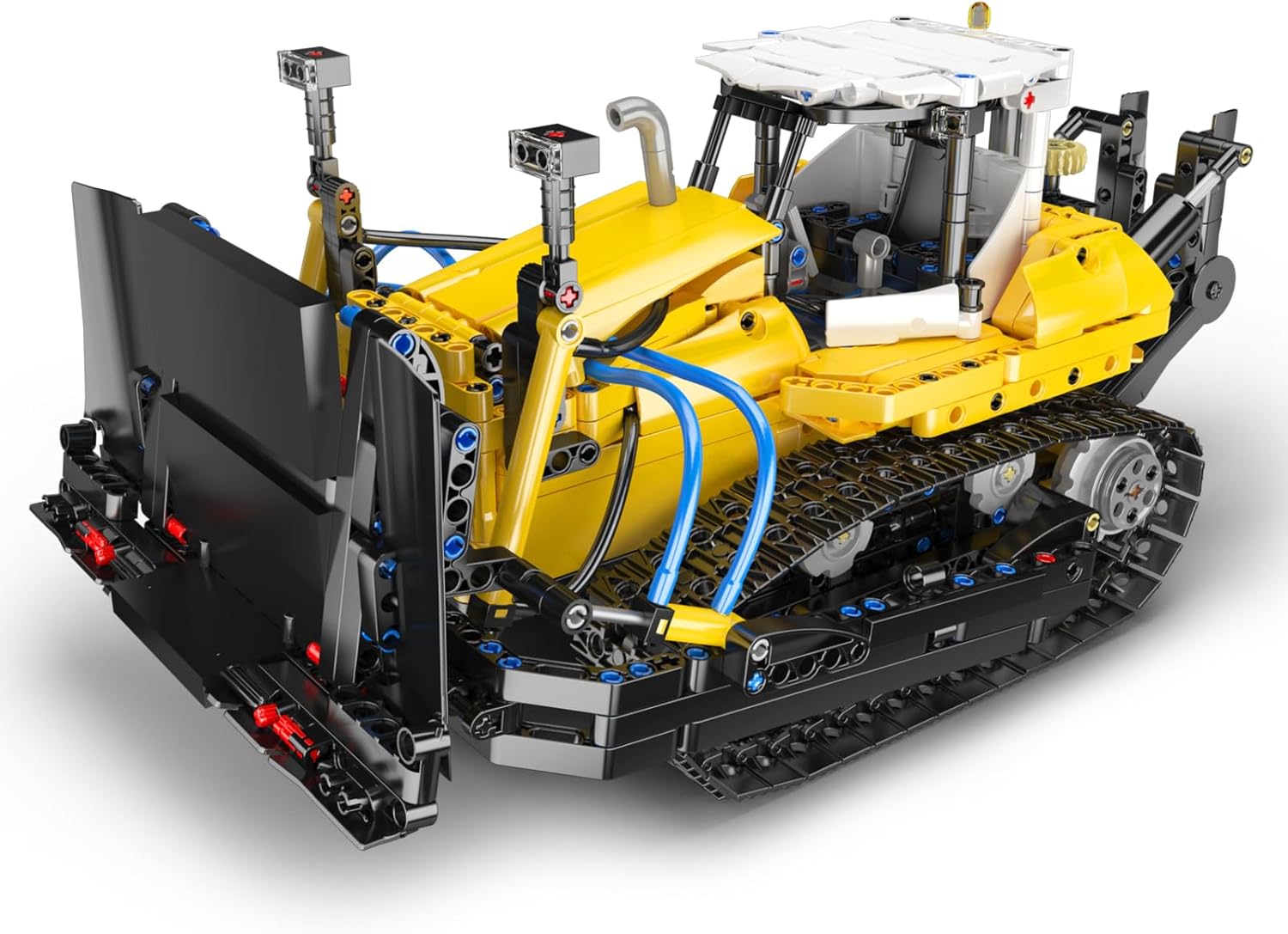 Dieses detailgetreue Modell des PR756 Bulldozers bildet alle wesentlichen Elemente eines modernen Baufahrzeugs ab – von der breiten Hebeschaufel über den Heckaufreißer bis hin zum verstärkten Kabinenrahmen. Der Bulldozer besticht durch sein markantes gelb-schwarzes Industriedesign, akzentuiert durch funktionale blaue Pneumatikschläuche, die dem gesamten Rahmen ein realistisches Hydraulik-Erscheinungsbild verleihen.