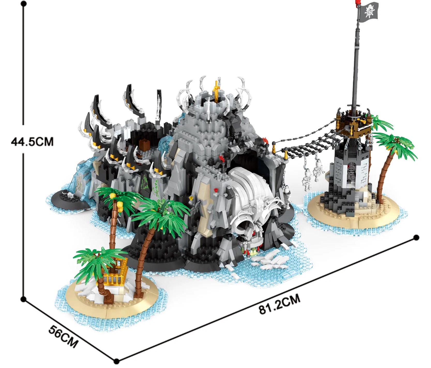 Die Piratenbucht lässt sich aufklappen und gibt im Inneren neben einem imposanten Wasserfall ihre wahre Verwendung als Verteidigungsposten und Geheimversteck der Piraten preis. Sechs Kanonen auf den Wehrgängen laden zu umfangreichen Spielsessions ein. Von Vorne präsentiert sich die Bucht mit ihrem riesigen Totenschädel und den aufgehängten Skeletten als ebenso bedrohlich wie geheimnisvoll. Ein Aussichtsturm ist mit der Bucht durch eine Hängebrücke verbunden und erweitert die Szenerie passend.