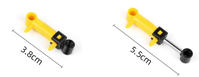 Pneumatik Zylinder von Mould King 1x5L. 2 Anschlüsse für Druckluftschlauch 4mm Außendurchmesser (2mm Innendurchmesser) Die Länge des Zylinders: 3,8cm, ausgefahren: 5,5cm