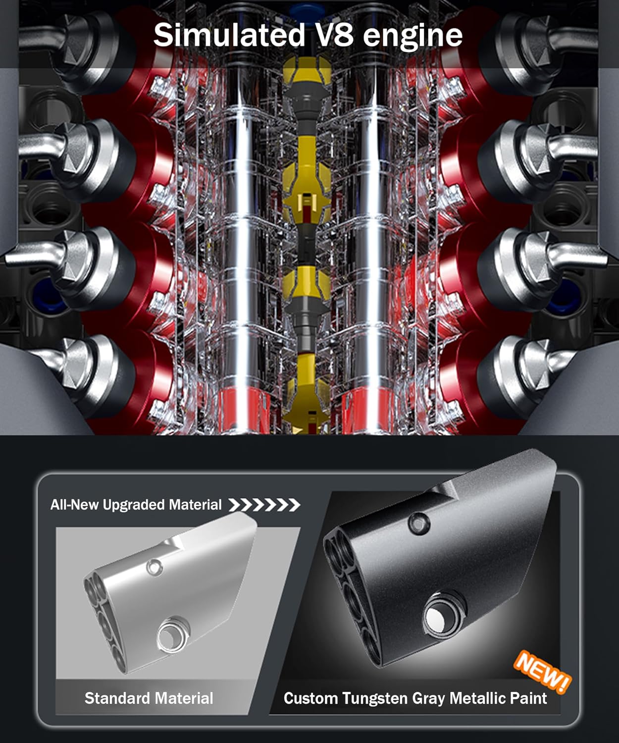 Motorgetriebenes Model eines V-8-Zylinder Verbrennungsmotors. Beinhaltet einen XL-Motor und eine Batteriebox.