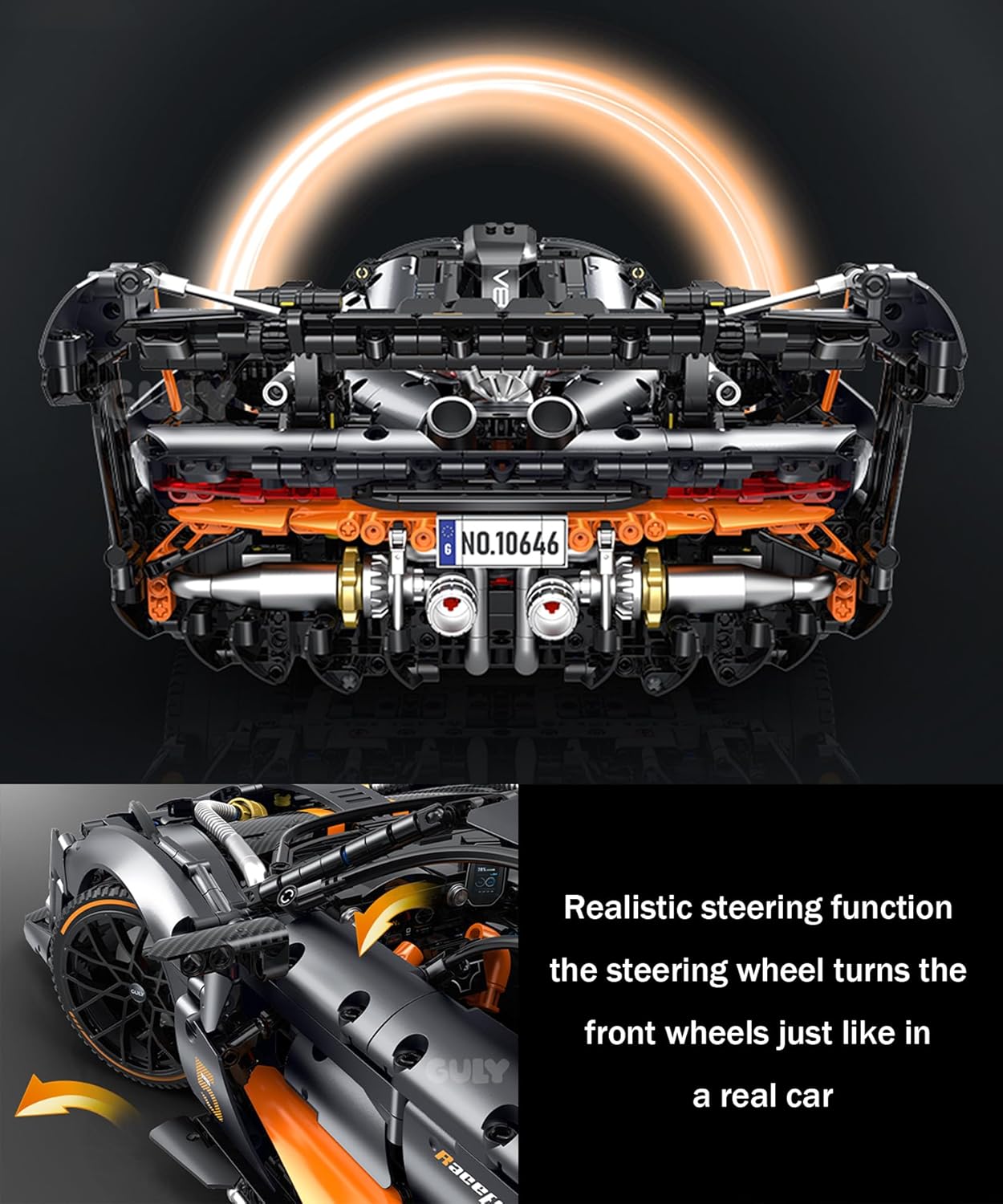 Der GULY 10646 Sportwagen ist ein Technic-Modell im Maßstab 1:8, das die Essenz eines echten Senna einfängt. Mit seinen charakteristischen Frontscheinwerfern und dem aggressiven Profil liefert dieses Auto pure Rennenergie in jedem Stein.