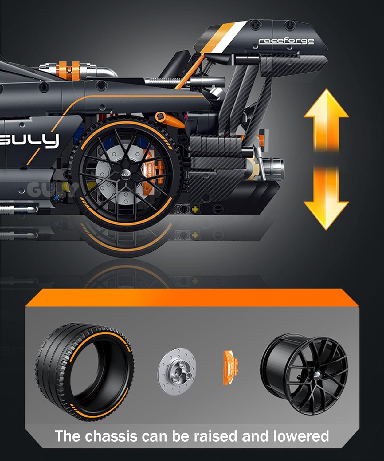 Der GULY 10647 Sportwagen ist ein Technic-Modell im Maßstab 1:8, das die Essenz eines echten Aston Martin Vulcan einfängt. Mit seinen charakteristischen Frontscheinwerfern und dem aggressiven Profil liefert dieses Auto pure Rennenergie in jedem Stein. Eines seiner herausragenden Merkmale ist der automatisch verstellbare Fahrwerk, der für einen Hauch von Realismus und aerodynamischer Funktion sorgt. Egal, ob Sie ein Aston Martin-Fan, ein Sammler oder auf der Suche nach einem detaillierten Technic-Auto sind, dieses Modell vereint ikonischen Stil und technische Präzision in einem dynamischen 1:8 Model. Dynamic Version mit Power Functions und Beleuchtung. Steine von JieStar, 45 davon bedruckt + Sticker.