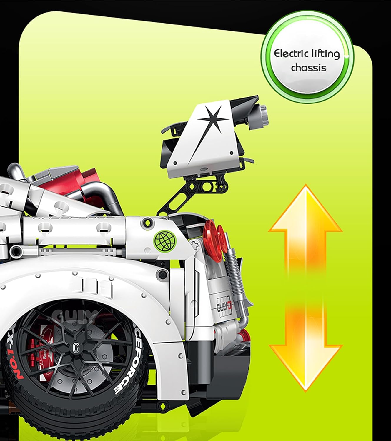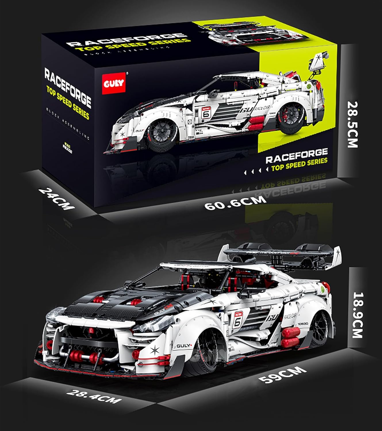 Der GULY 10630 GTR Sportwagen ist ein Technic-Modell im Maßstab 1:8, das die Essenz eines echten Nissan GTR einfängt. Mit seinen charakteristischen Frontscheinwerfern und dem aggressiven Profil liefert dieses GTR-Auto pure Rennenergie in jedem Stein.