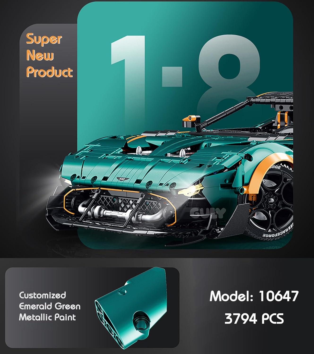 Der GULY 10647 Sportwagen ist ein Technic-Modell im Maßstab 1:8, das die Essenz eines echten Aston Martin Vulcan einfängt. Mit seinen charakteristischen Frontscheinwerfern und dem aggressiven Profil liefert dieses Auto pure Rennenergie in jedem Stein.