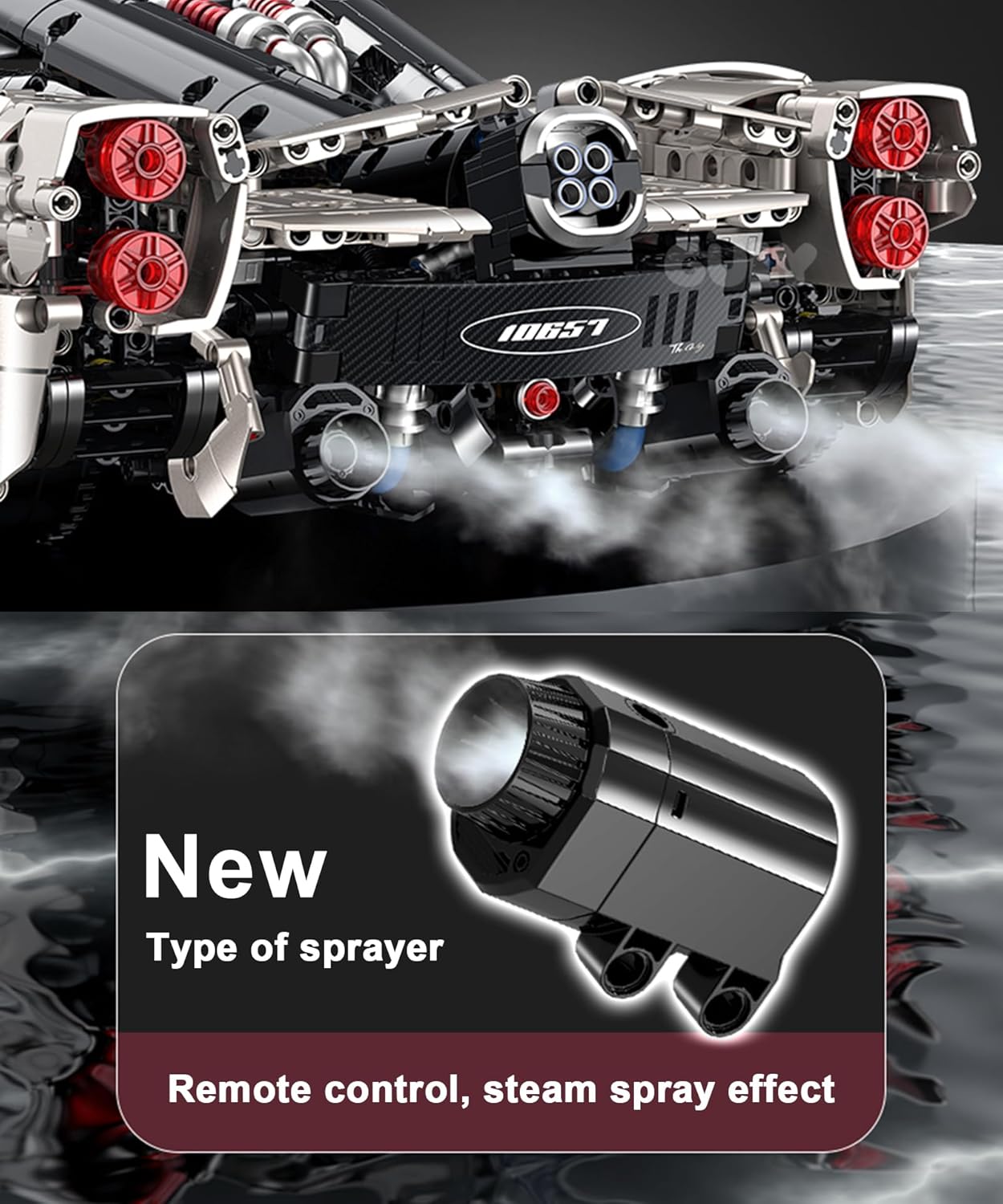Ein Lamborghini Huracán Temerario - Traum in speziellem Lack. Dynamic Version mit Power Functions. Die Motorisierung umfasst folgende Komponenten: 1x L-Motor 3x M-Motor 2x XL-Motor 1x Servo 2x LED-Licht2x JieStar Dampfgenerator1x Akkubox 4 Kanal mit Fernbedienung Steine von JieStar