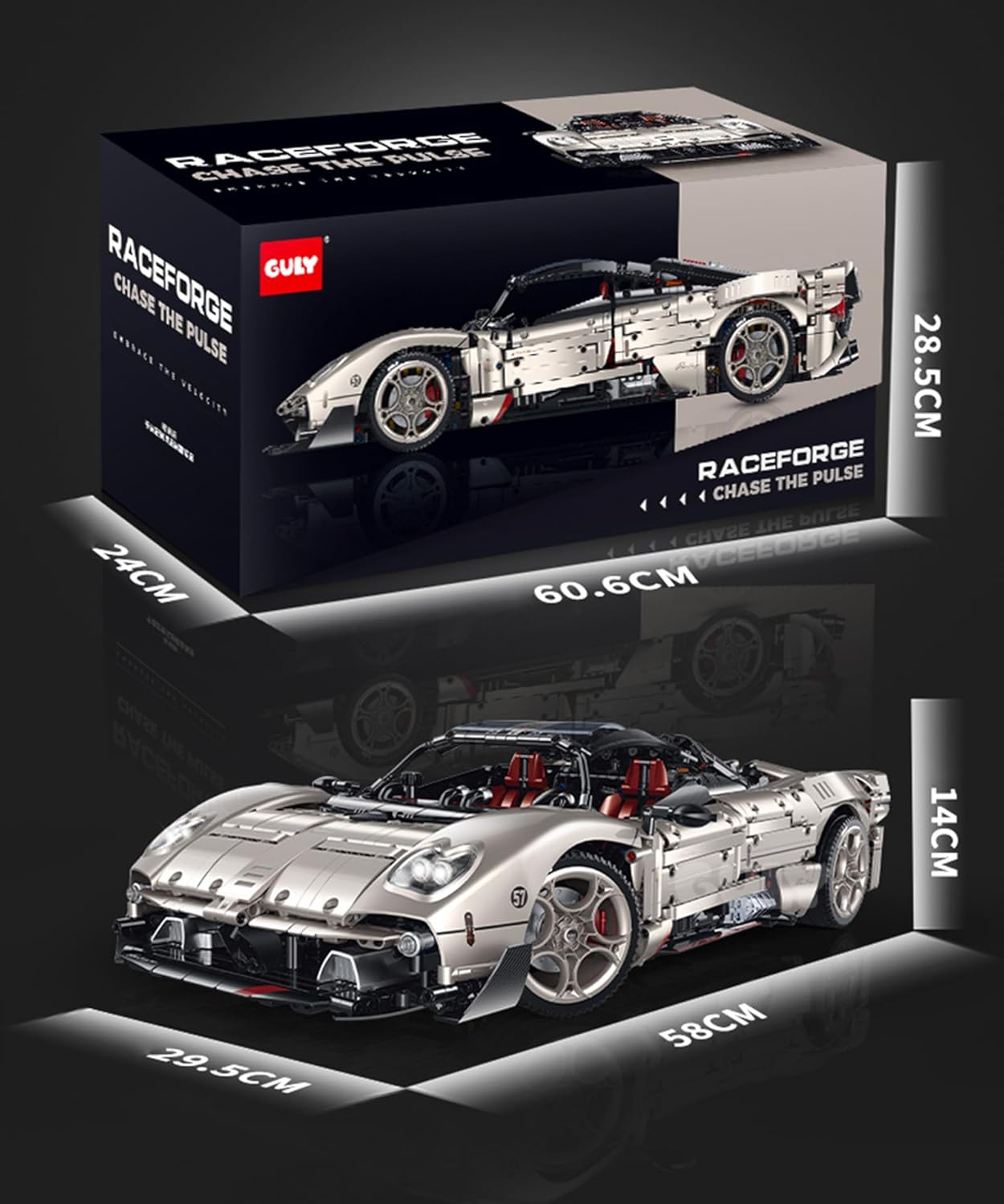 Tolles Technic Model der Marke Small Angle / JieStar. Vorlage ist der Pagani Utopia. 4 Teile bedruckt + Sticker, inkl. Beleuchtung