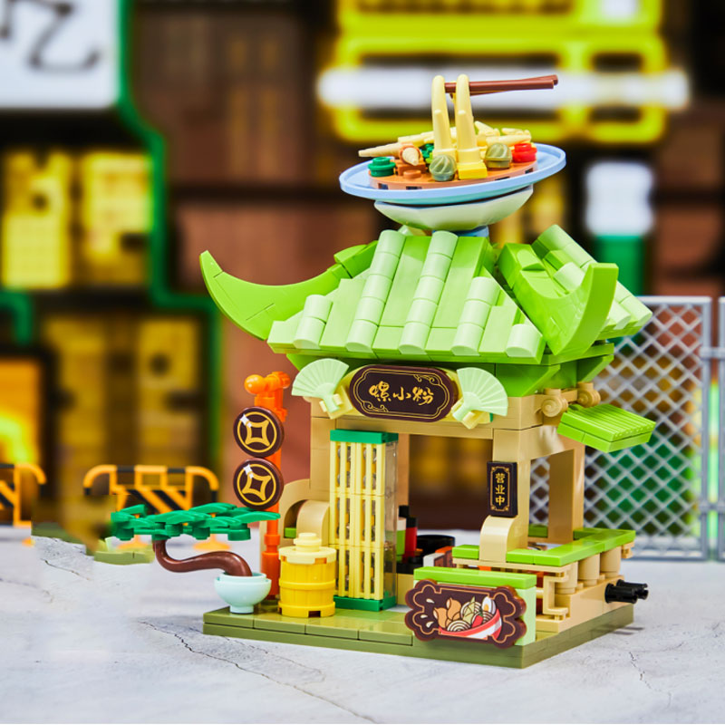 Pantasy Streed Food Serie: Farbenfrohe Miniatur-Häuser mit unglaublicher Detailfülle. Kleine Street Food Stände, die Innen wie Außen vor kreativen Bauelementen nur so strotzen. Auf kleinstem Raum (10 x 10 Noppen) wird der Innenraum detaillierte gestaltet mit Kochplatten und Mixern, Tischchen und Sitzgelegenheiten. Set enthält Sticker.