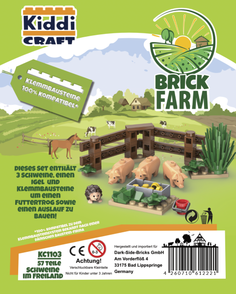 Das Set enthält insgesamt 57 Teile, 3 glückliche Schweine und 1 Igel.